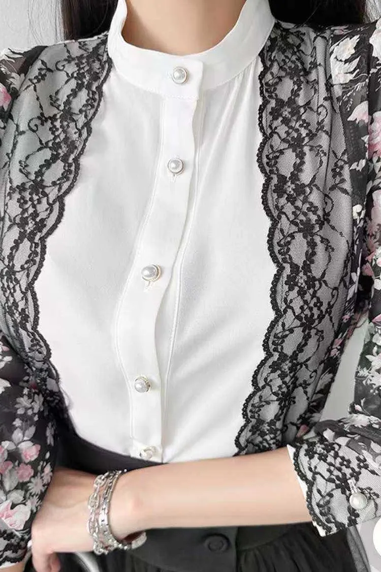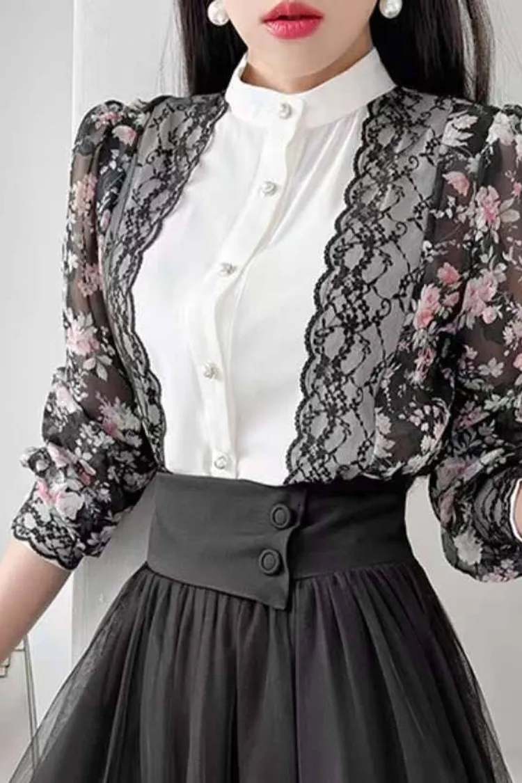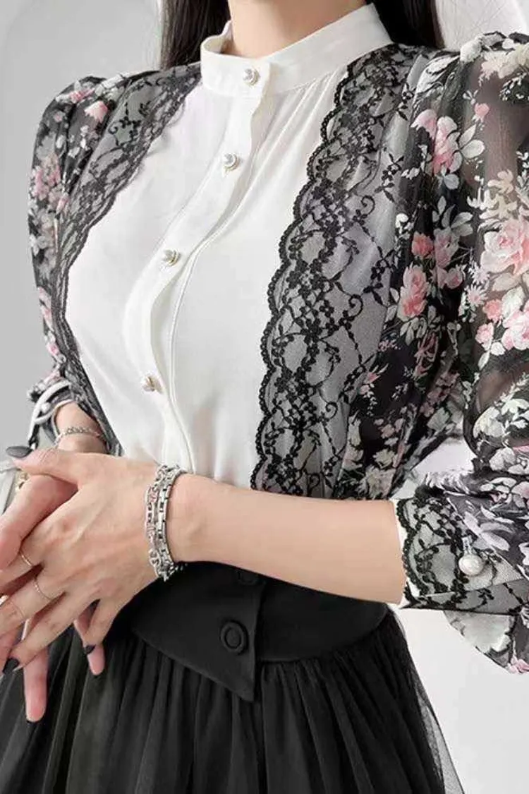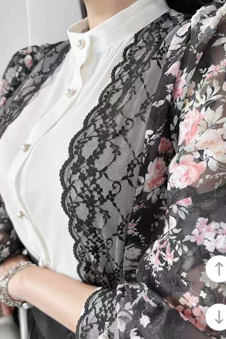 💞優雅浪漫拼接蕾絲花卉襯衫💞