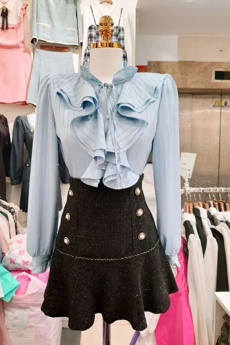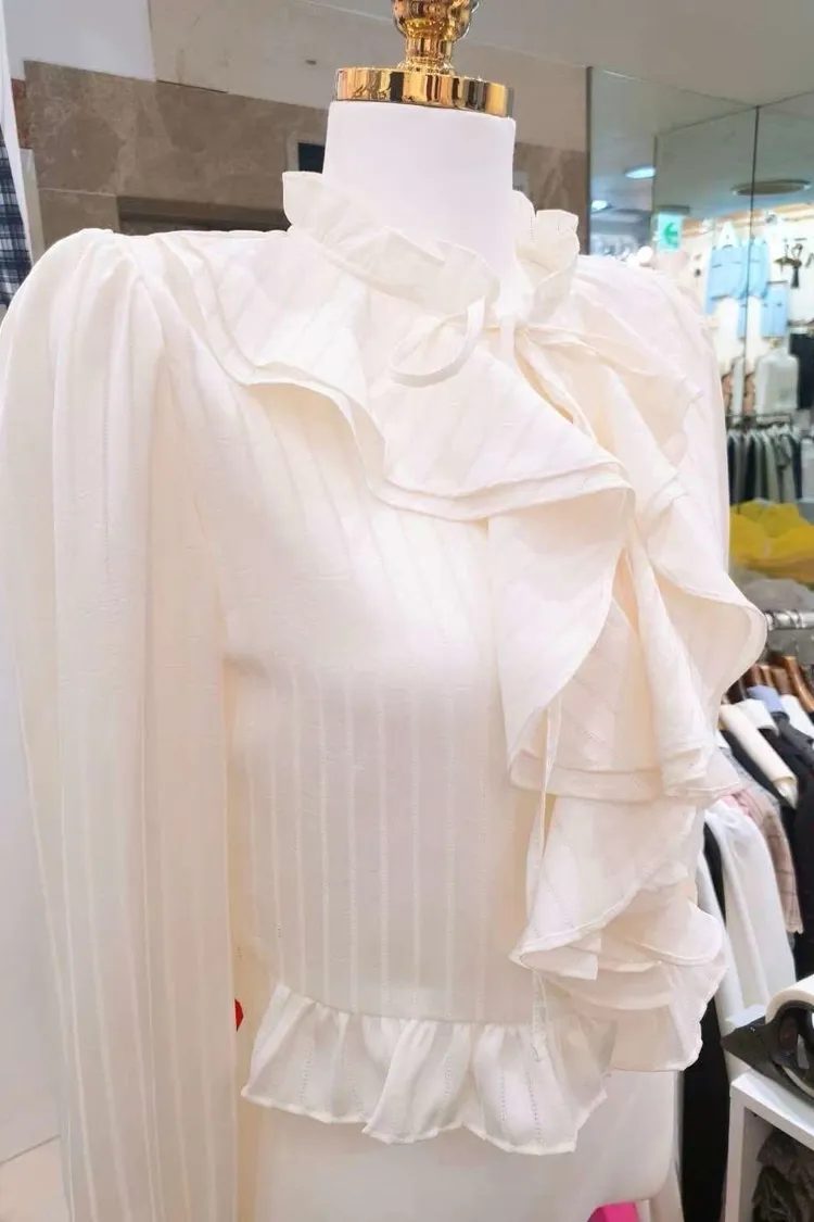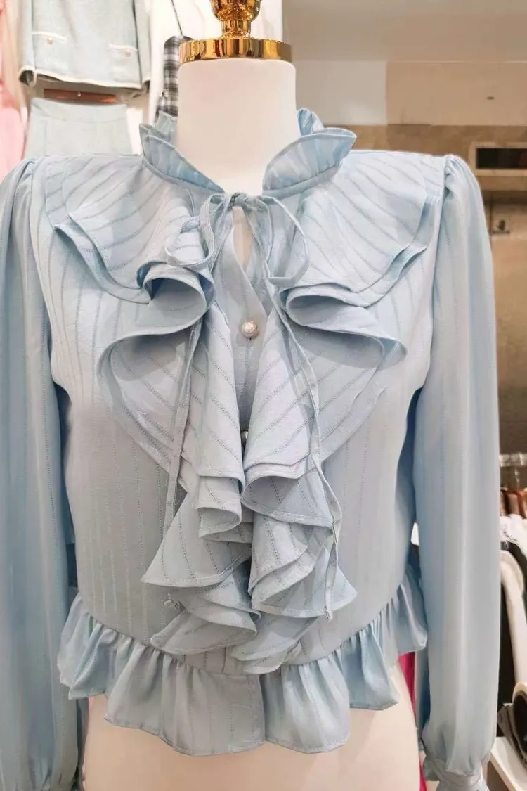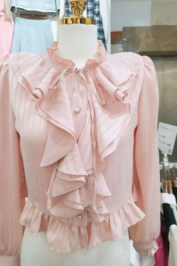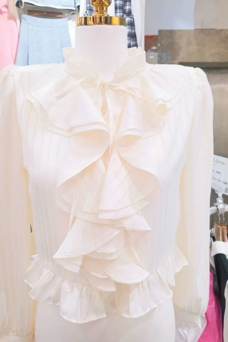 AD035 🇰🇷正韓🦋浪漫荷葉滾邊仙氣名媛襯衫🦋