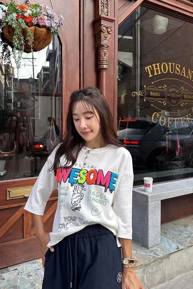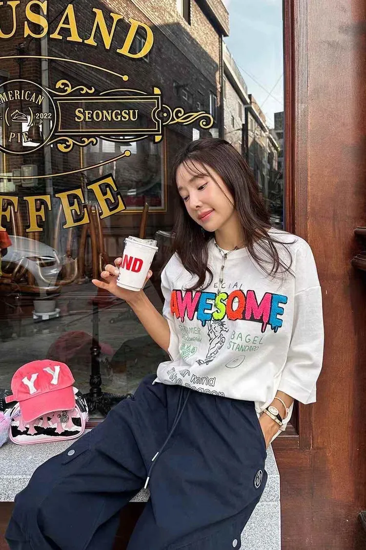 ANNA010 🇰🇷正韓_網紅家💙街頭潮流彩色立體字母休閒上衣💙