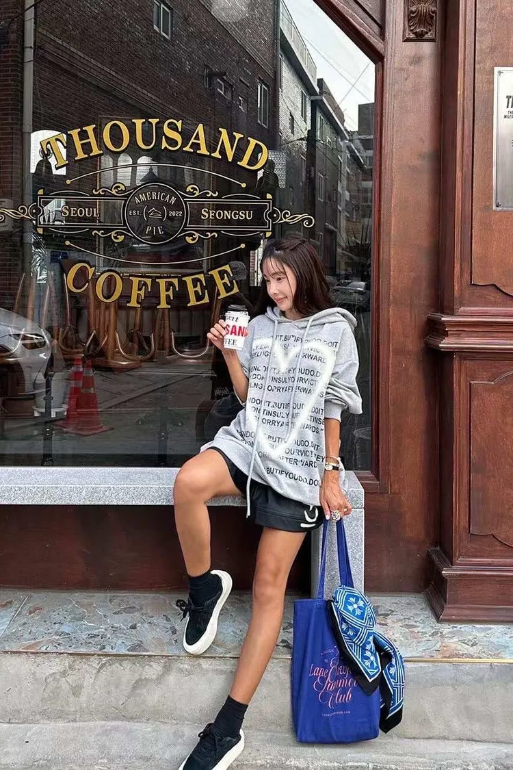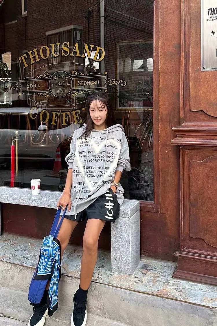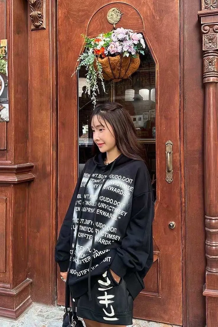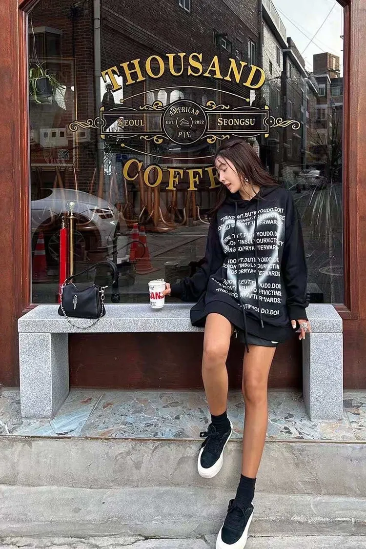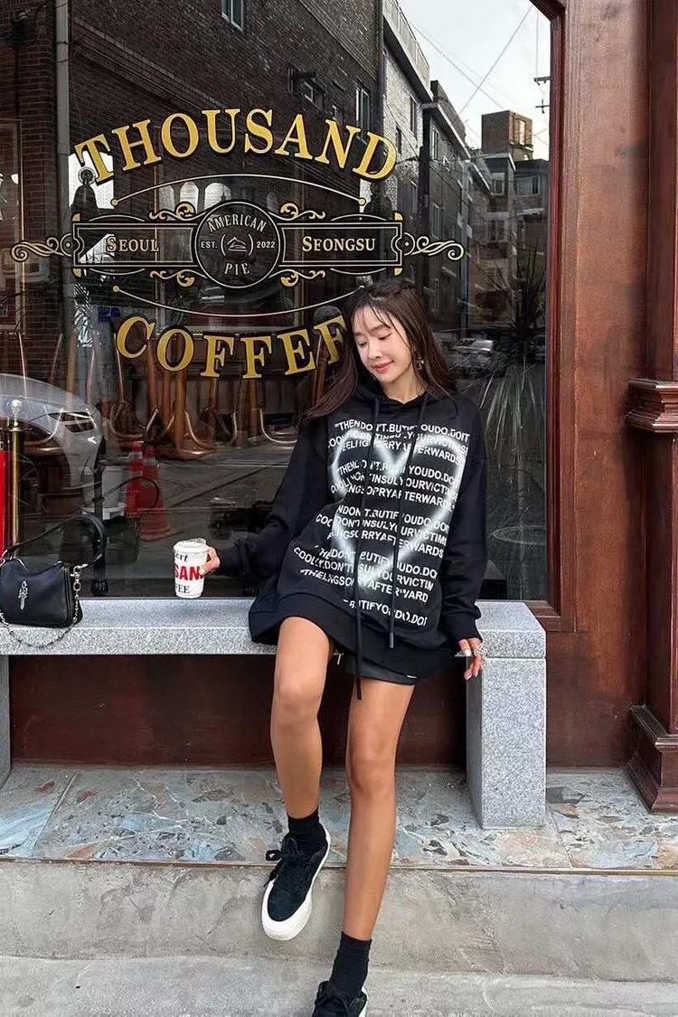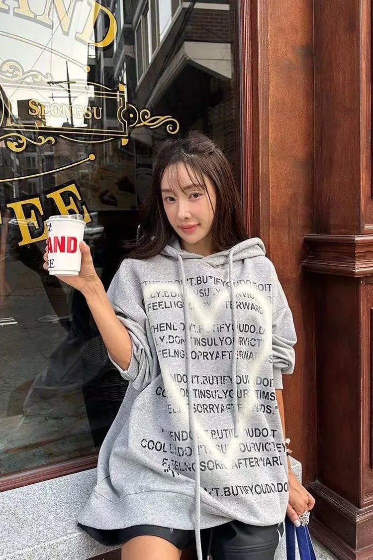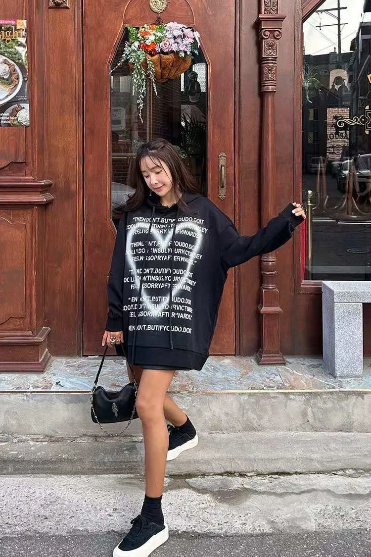 ANNA014 🇰🇷正韓_網紅家💙街頭潮酷滿版字母愛心連帽休閒長版上衣💙