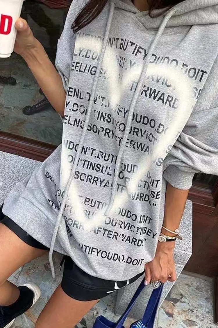 💙街頭潮酷滿版字母愛心連帽休閒長版上衣💙