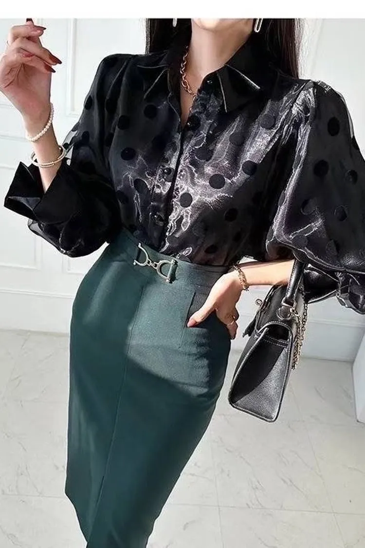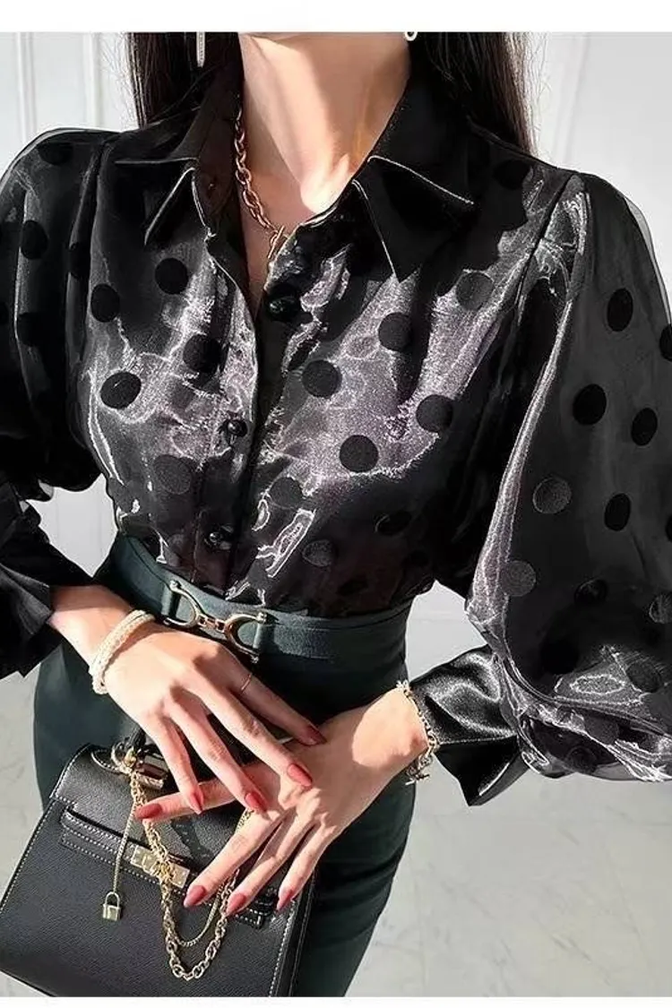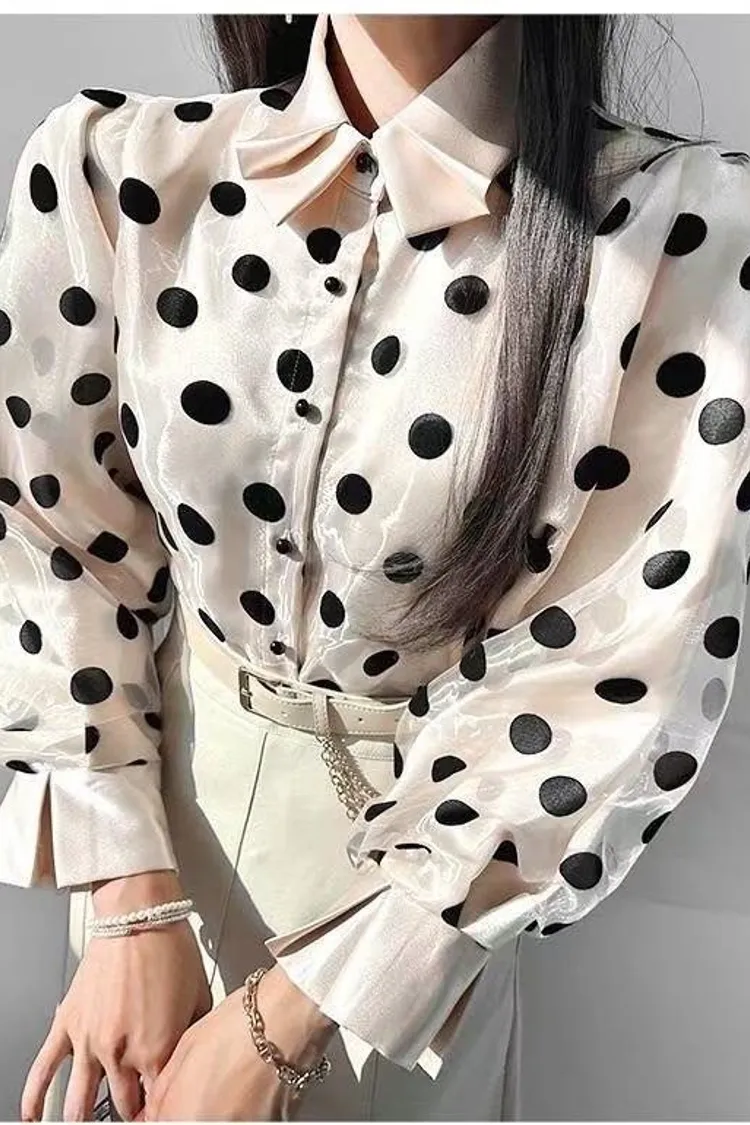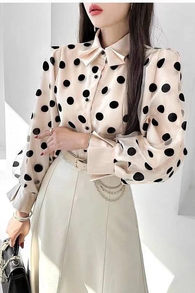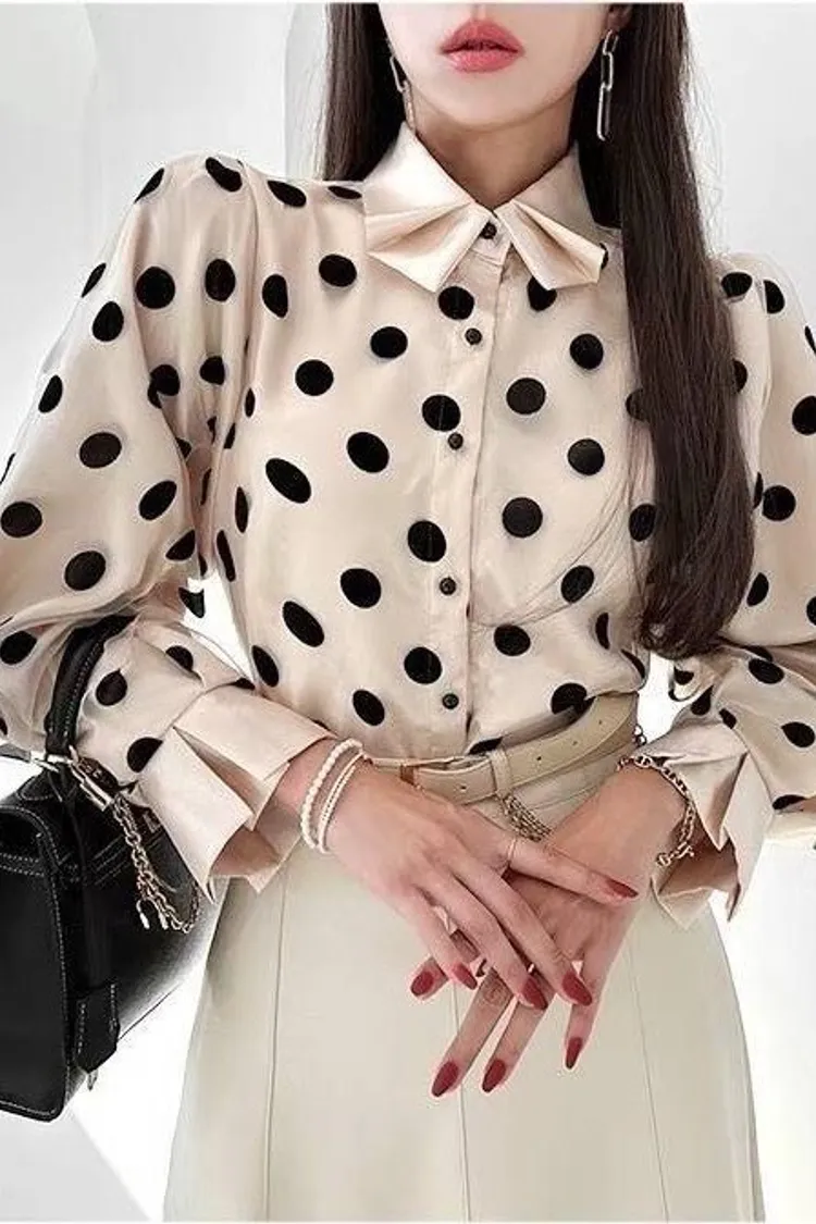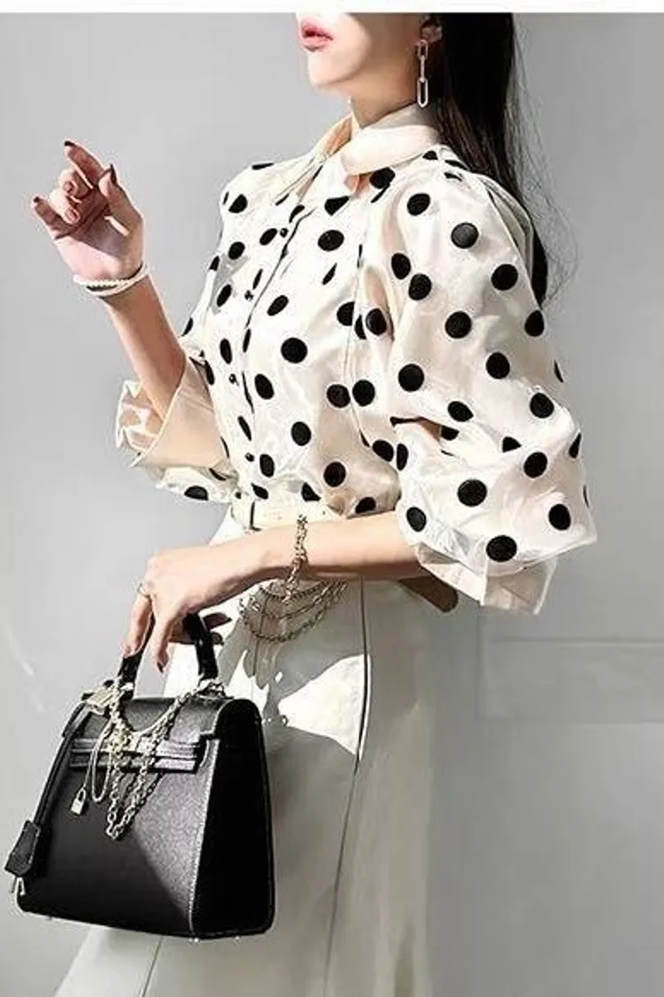 CH020 🇰🇷正韓💕韓劇女主復古優雅波點襯衫💕
