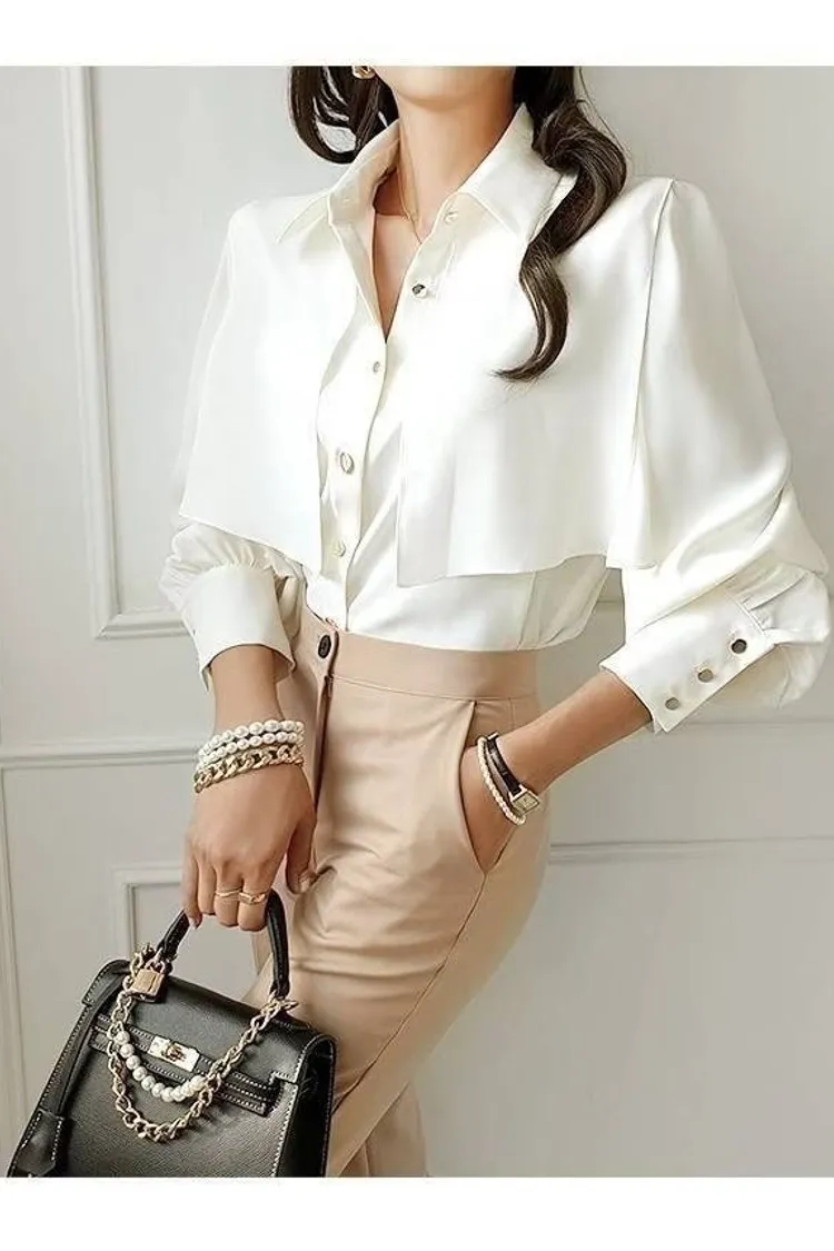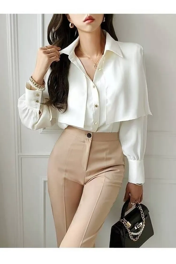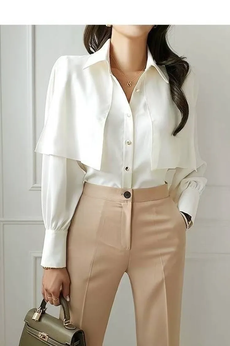 💕韓劇女主俐落幹練斗篷式襯衫💕
