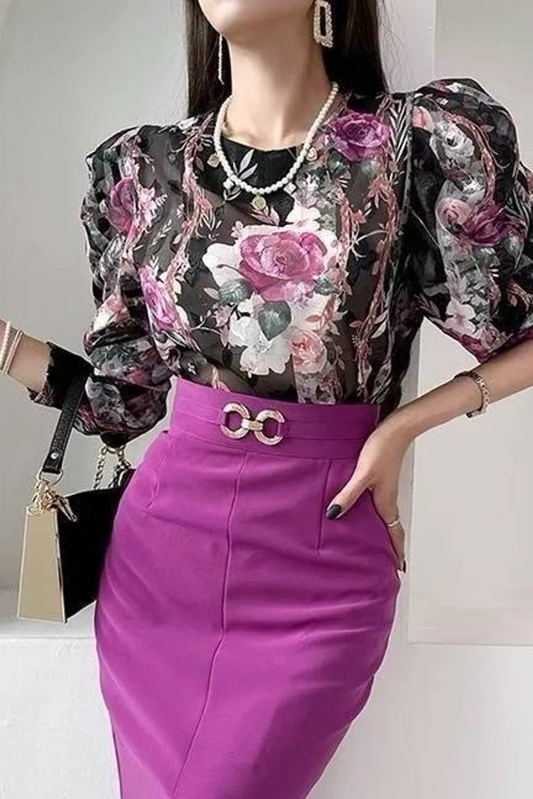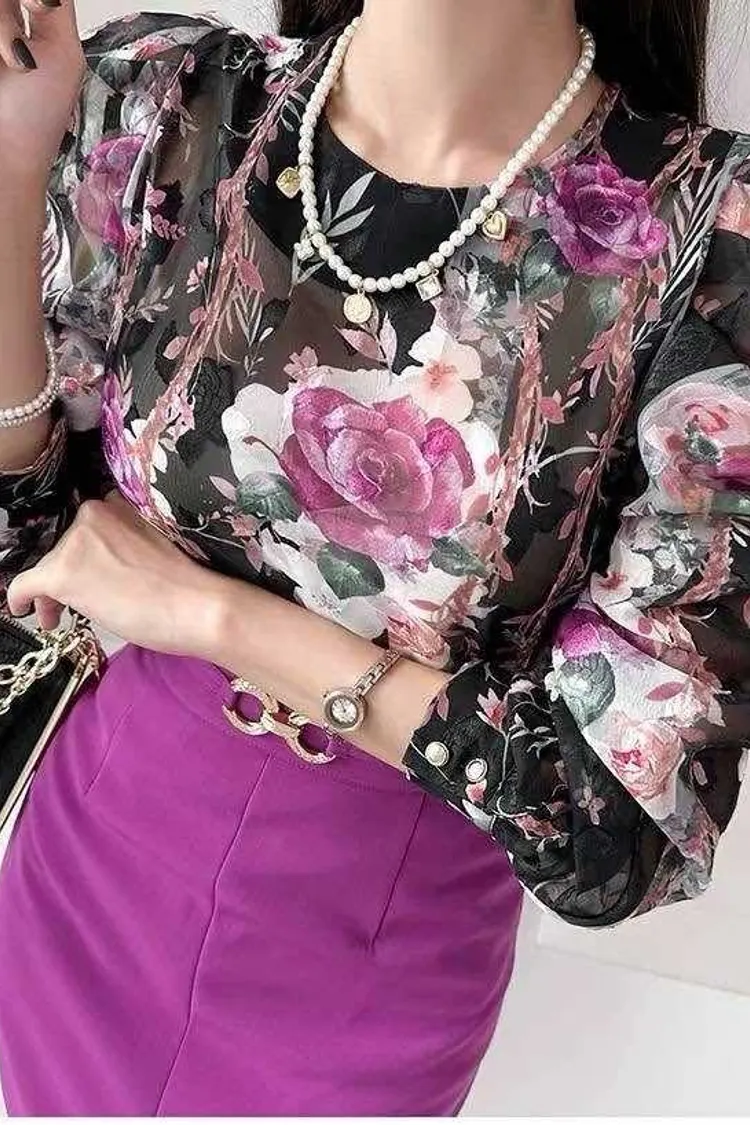 💕韓劇女主優雅浪漫滿版花卉雪紡衫