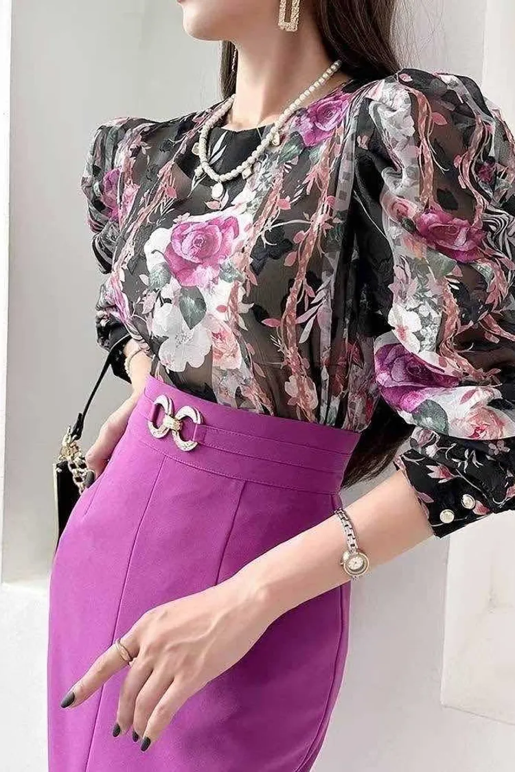 CH022 🇰🇷正韓💕韓劇女主優雅浪漫滿版花卉雪紡衫💕