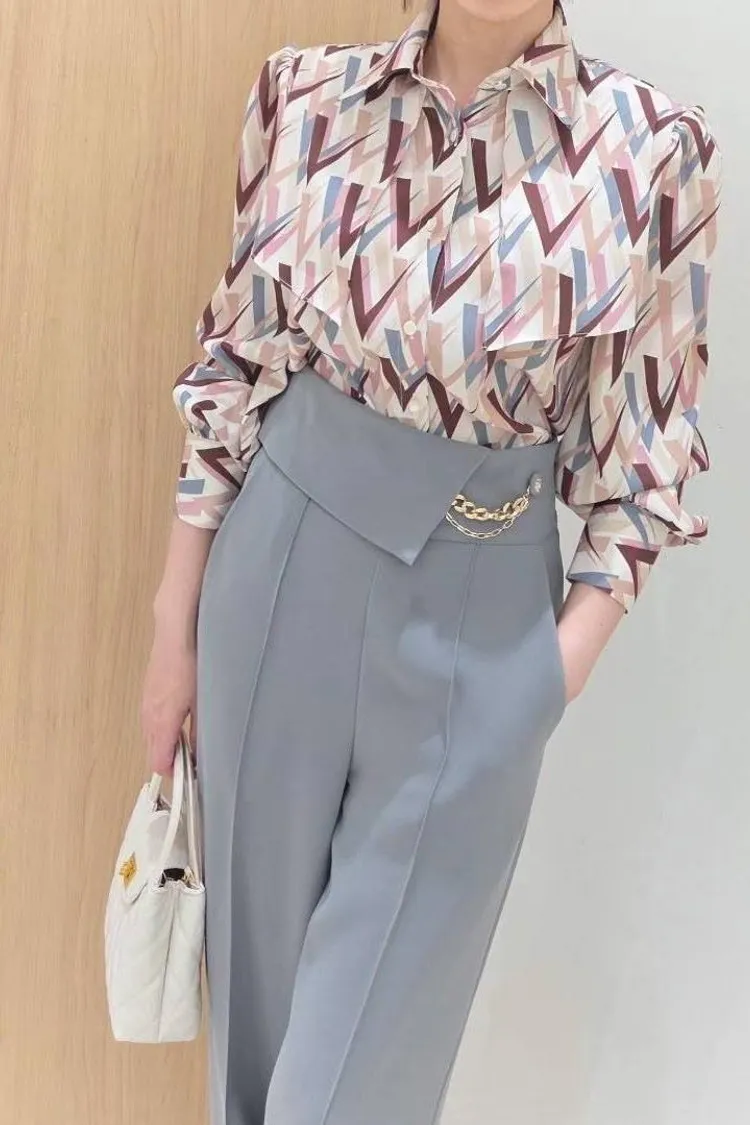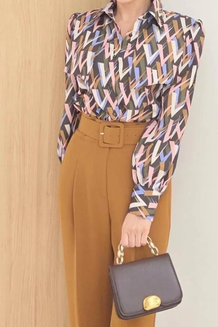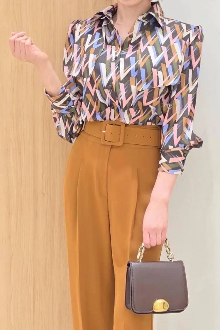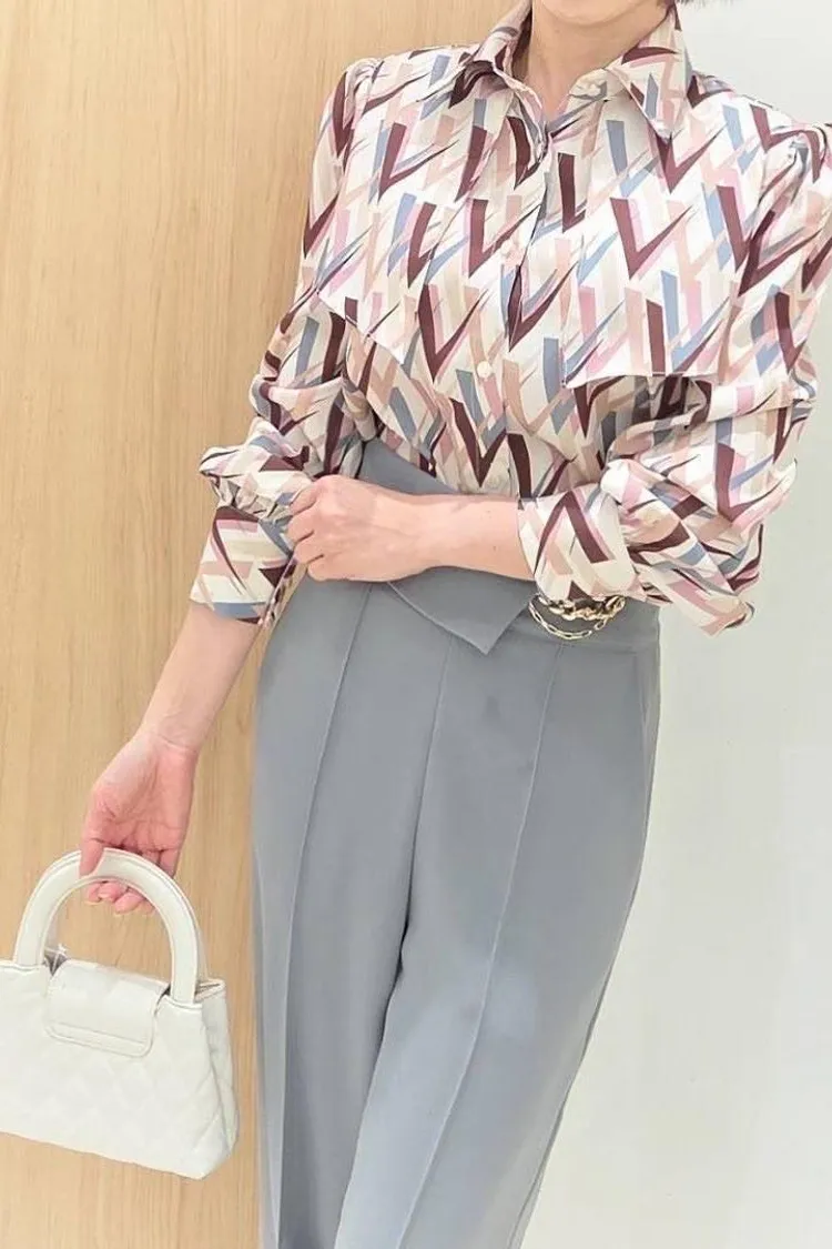 CH024 🇰🇷正韓💕韓劇女主優雅俐落幾何印花襯衫💕