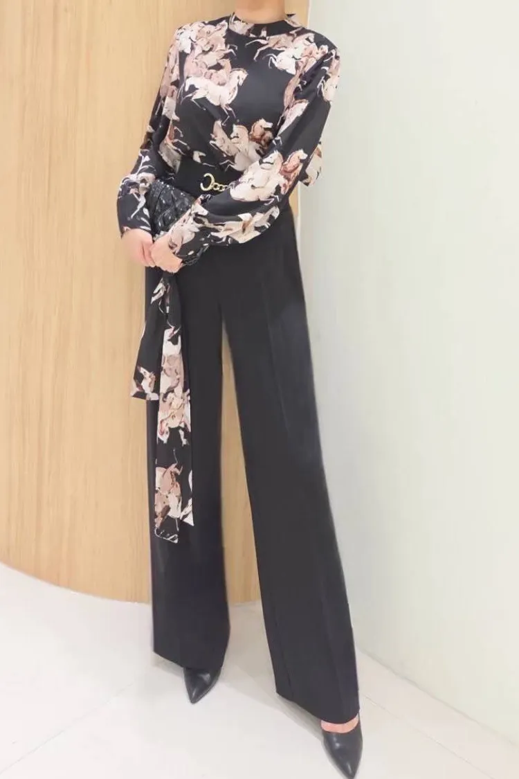 💕韓劇女主高雅氣質抽象花卉綁帶襯衫💕