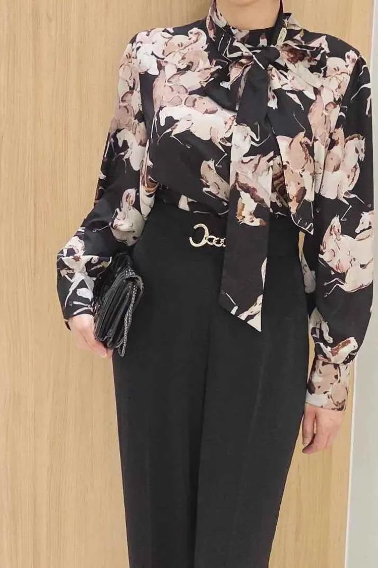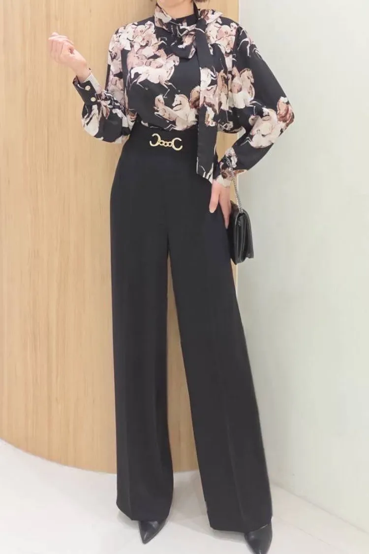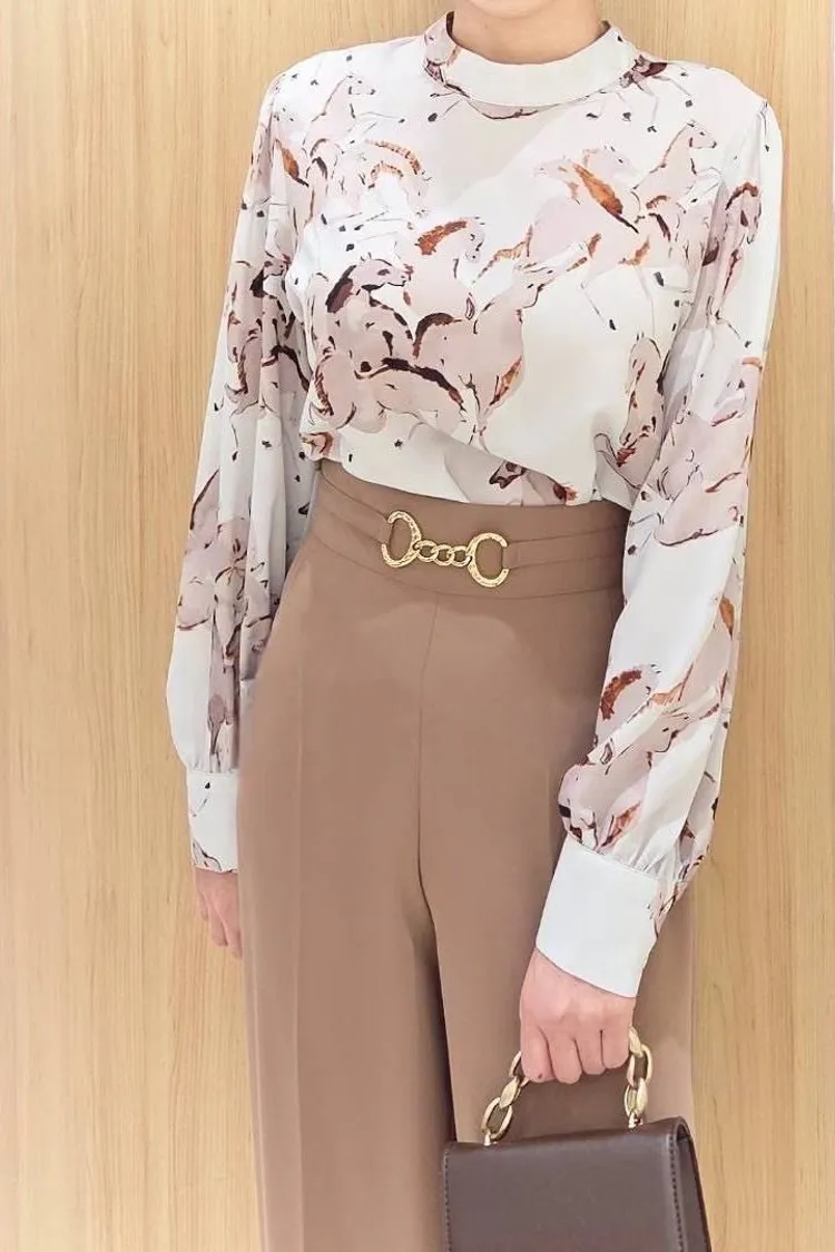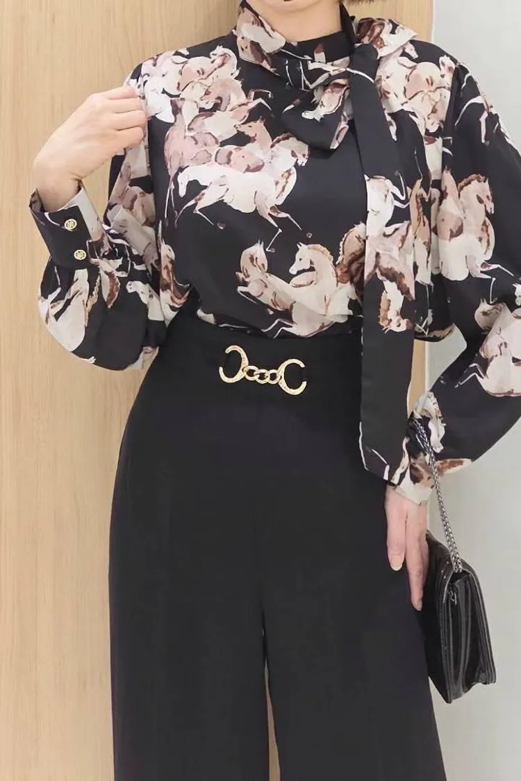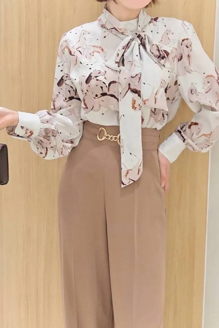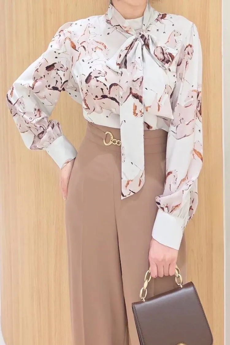CH028 🇰🇷正韓💕韓劇女主高雅氣質抽象花卉綁帶襯衫💕