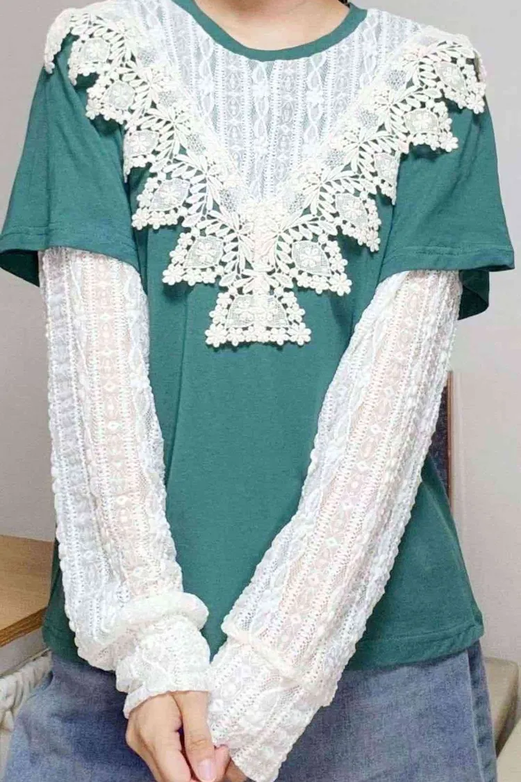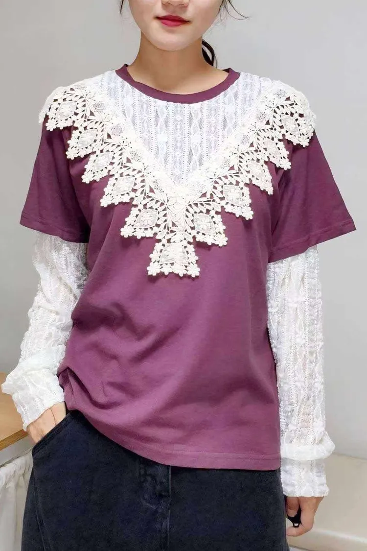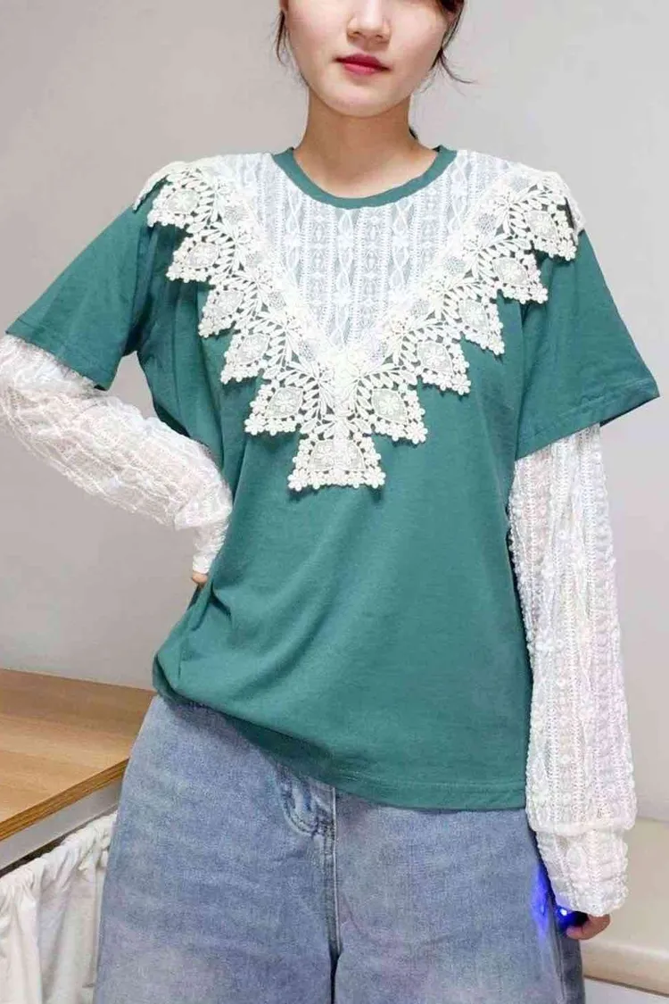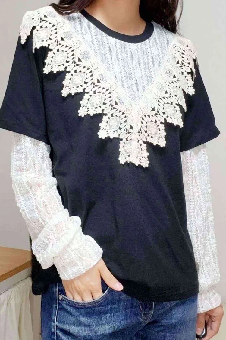 HE001 🇰🇷正韓_Hero💛拼接精美蕾絲上衣💛
