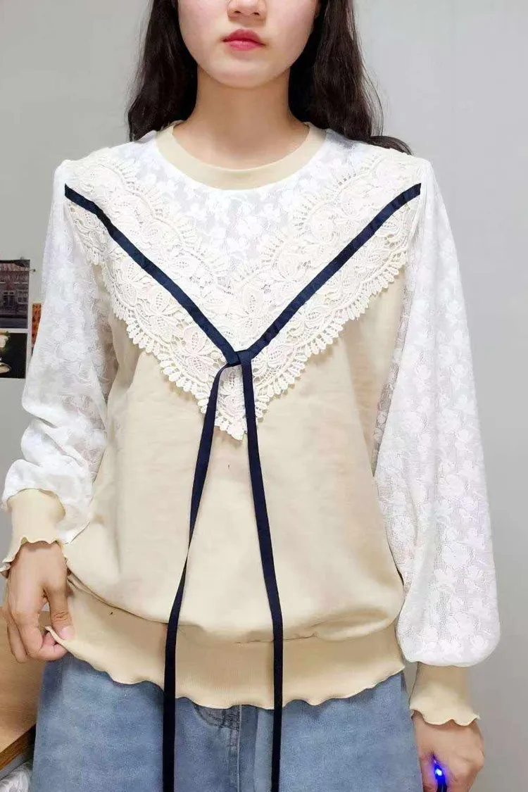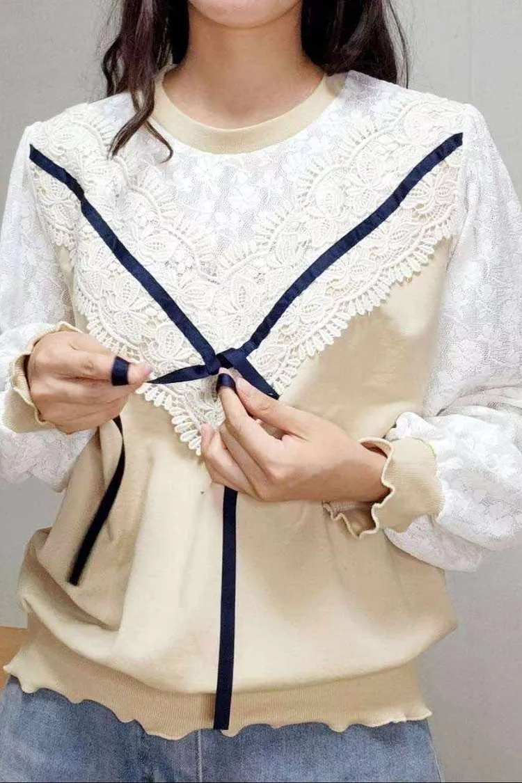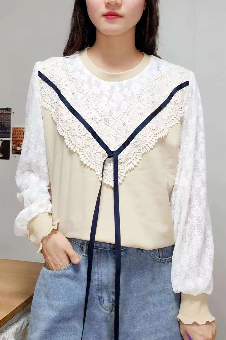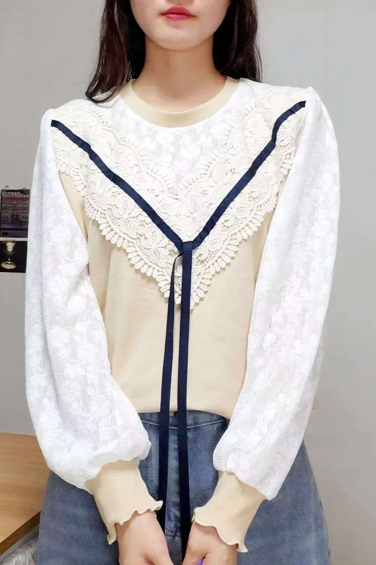 💛精緻V型蕾絲拼接氣質上衣💛