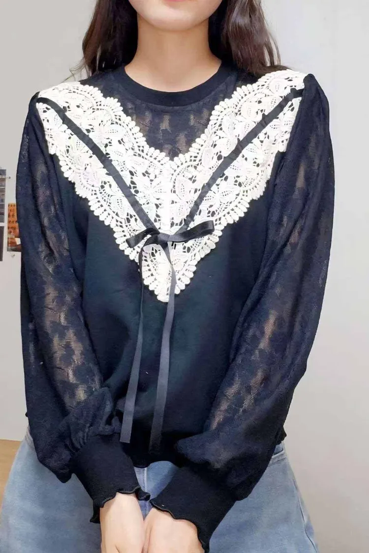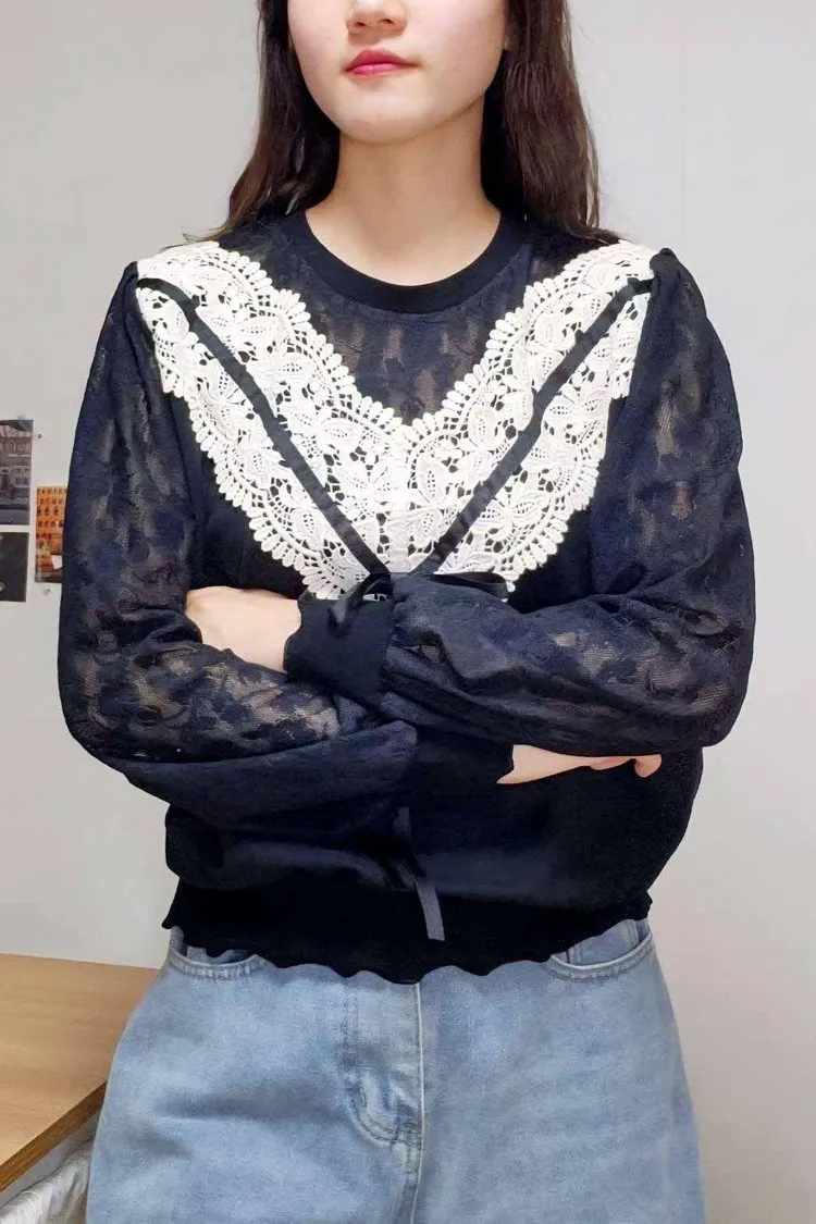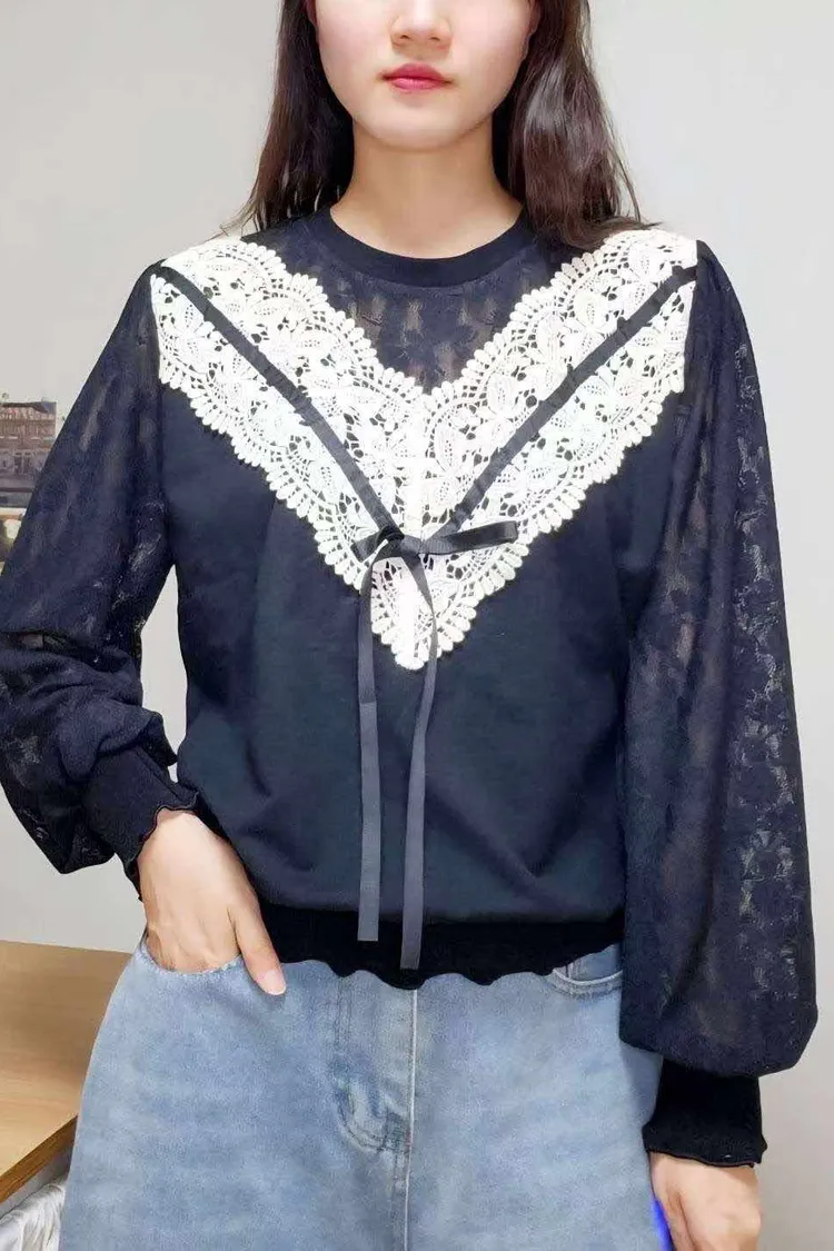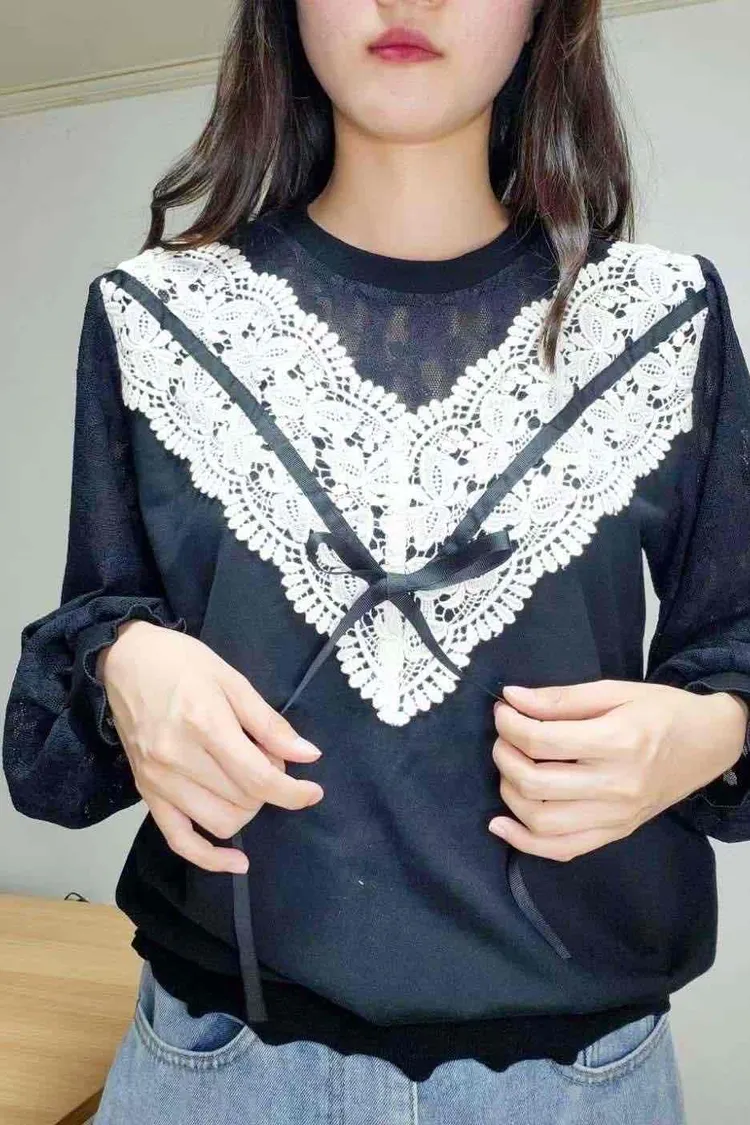 HE009 🇰🇷正韓_Hero💛精緻V型蕾絲拼接氣質上衣💛