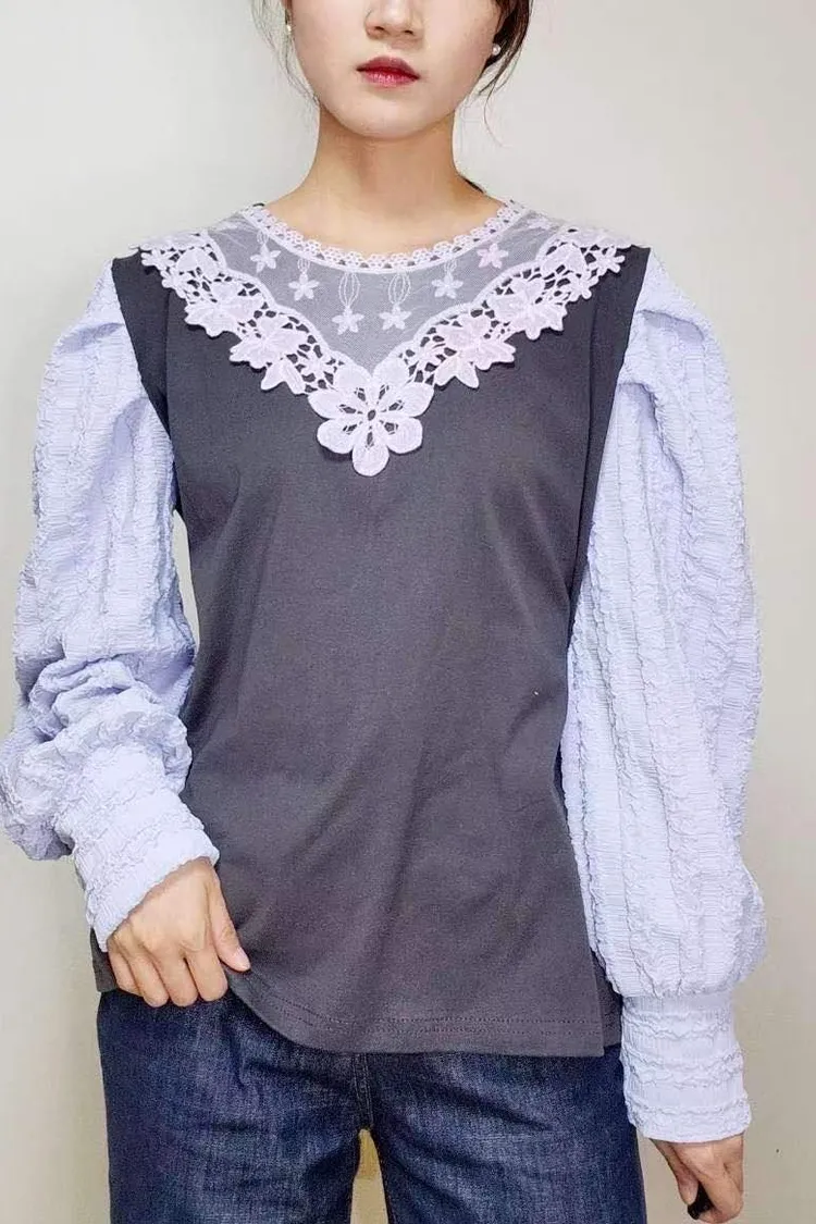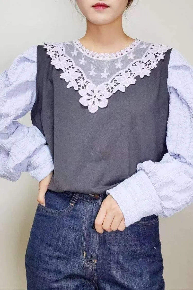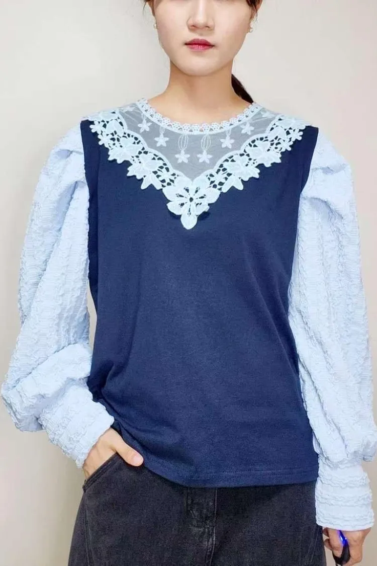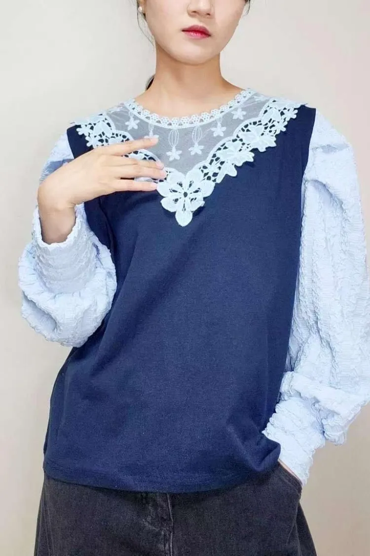 HE010 🇰🇷正韓_Hero💛立體花朵蕾絲拼接上衣💛