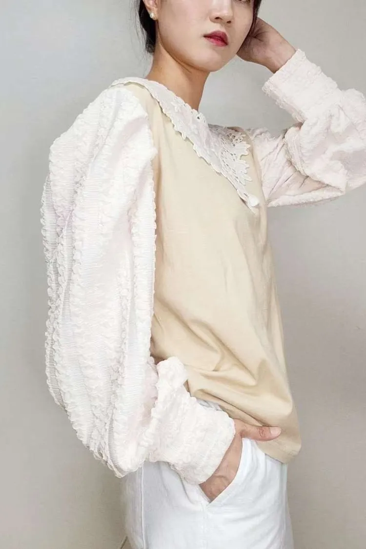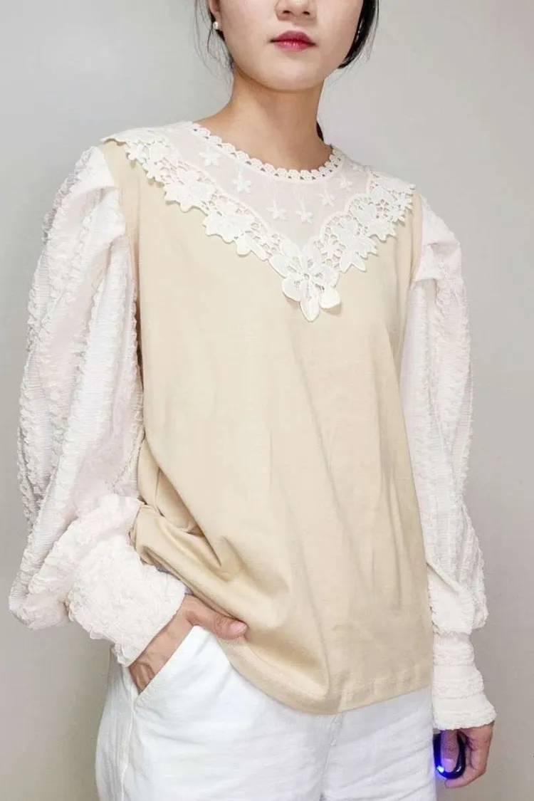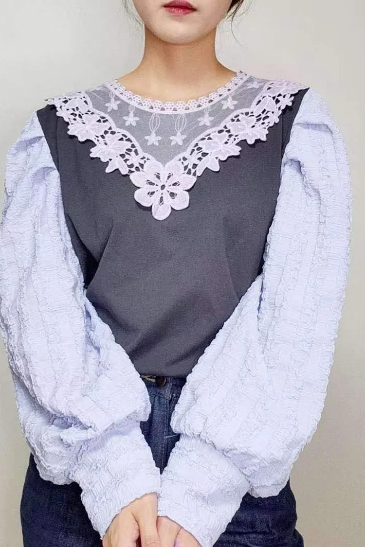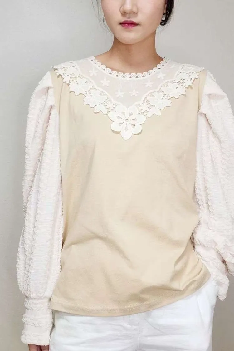 HE010 🇰🇷正韓_Hero💛立體花朵蕾絲拼接上衣💛