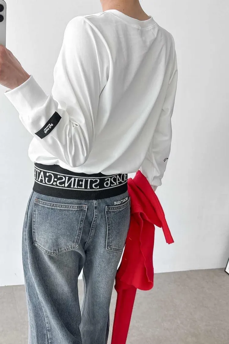 IA011 🇰🇷正韓_精品棟🧡滿版時尚潮流英文織帶休閒上衣🧡