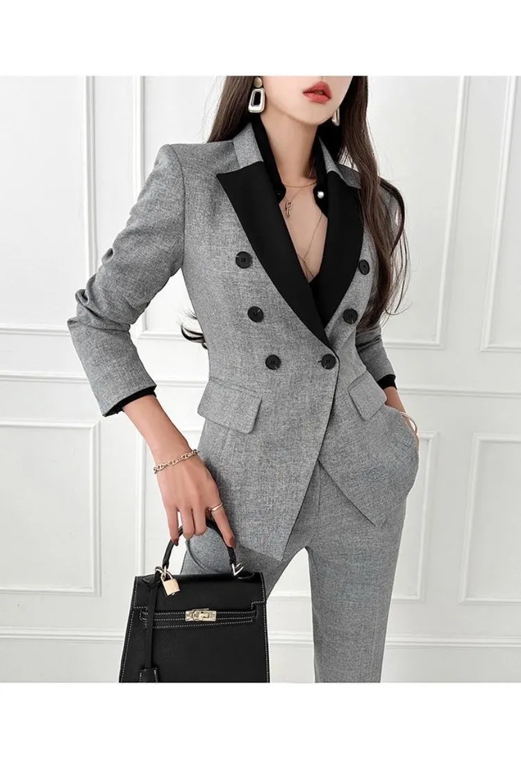 JK007 🇰🇷正韓_精品棟💜雙排扣時尚西裝套裝💜