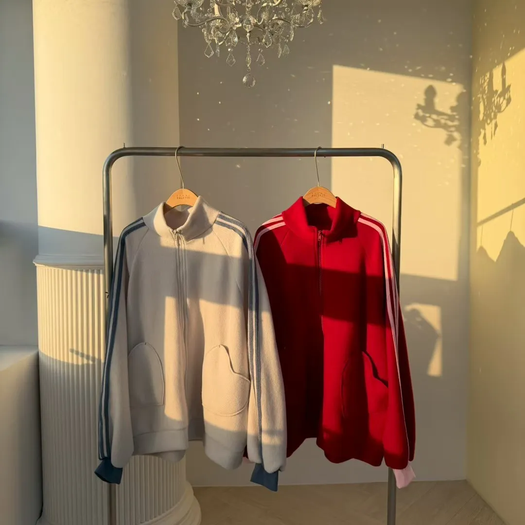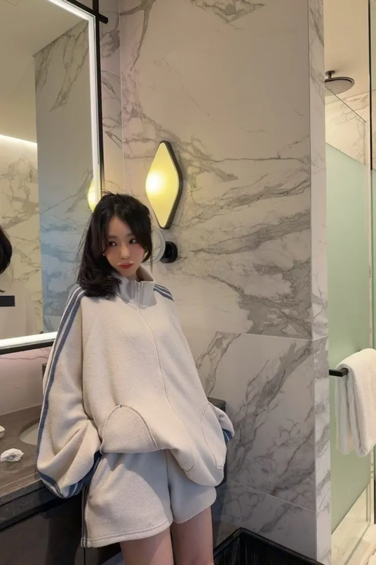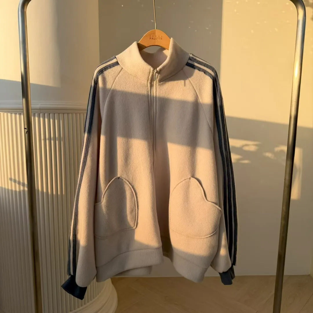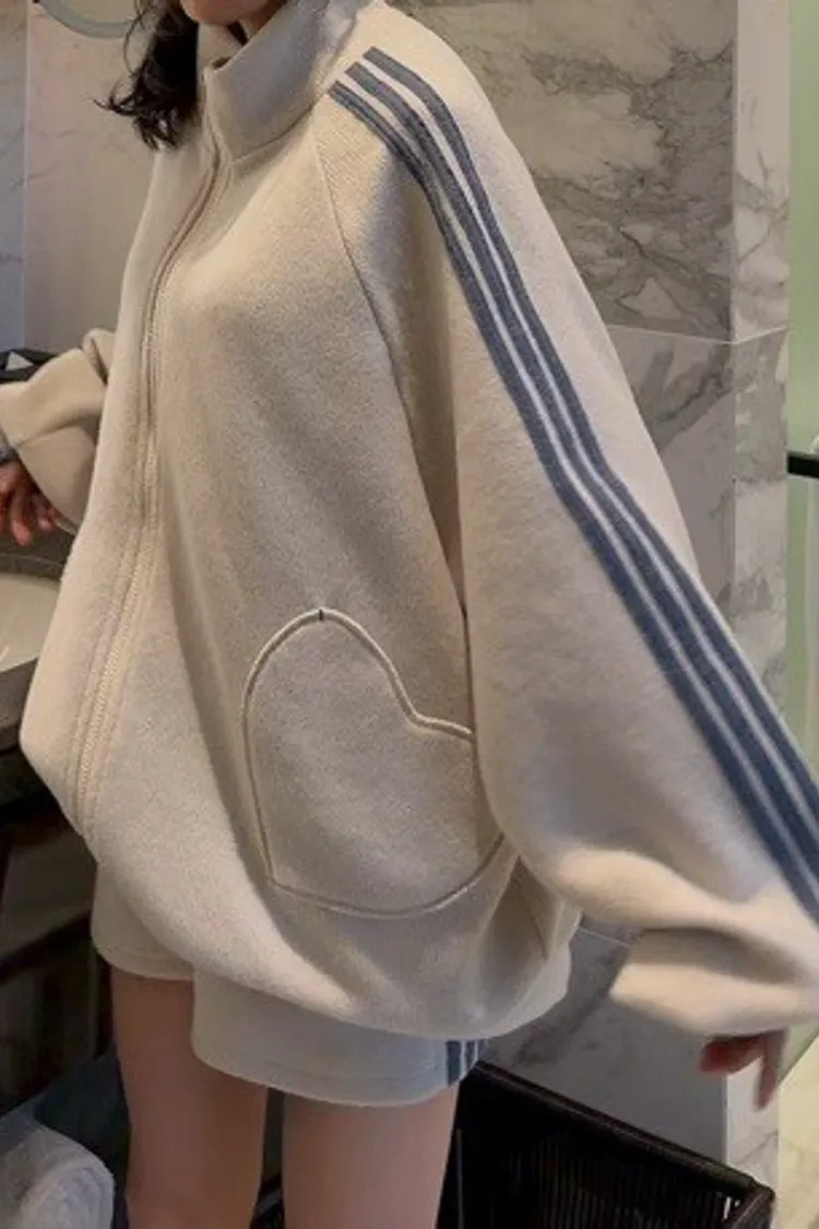 🏃♀️甜心運動風:條紋袖休閒拉鍊套裝 (Oversized Zip-Up Set)