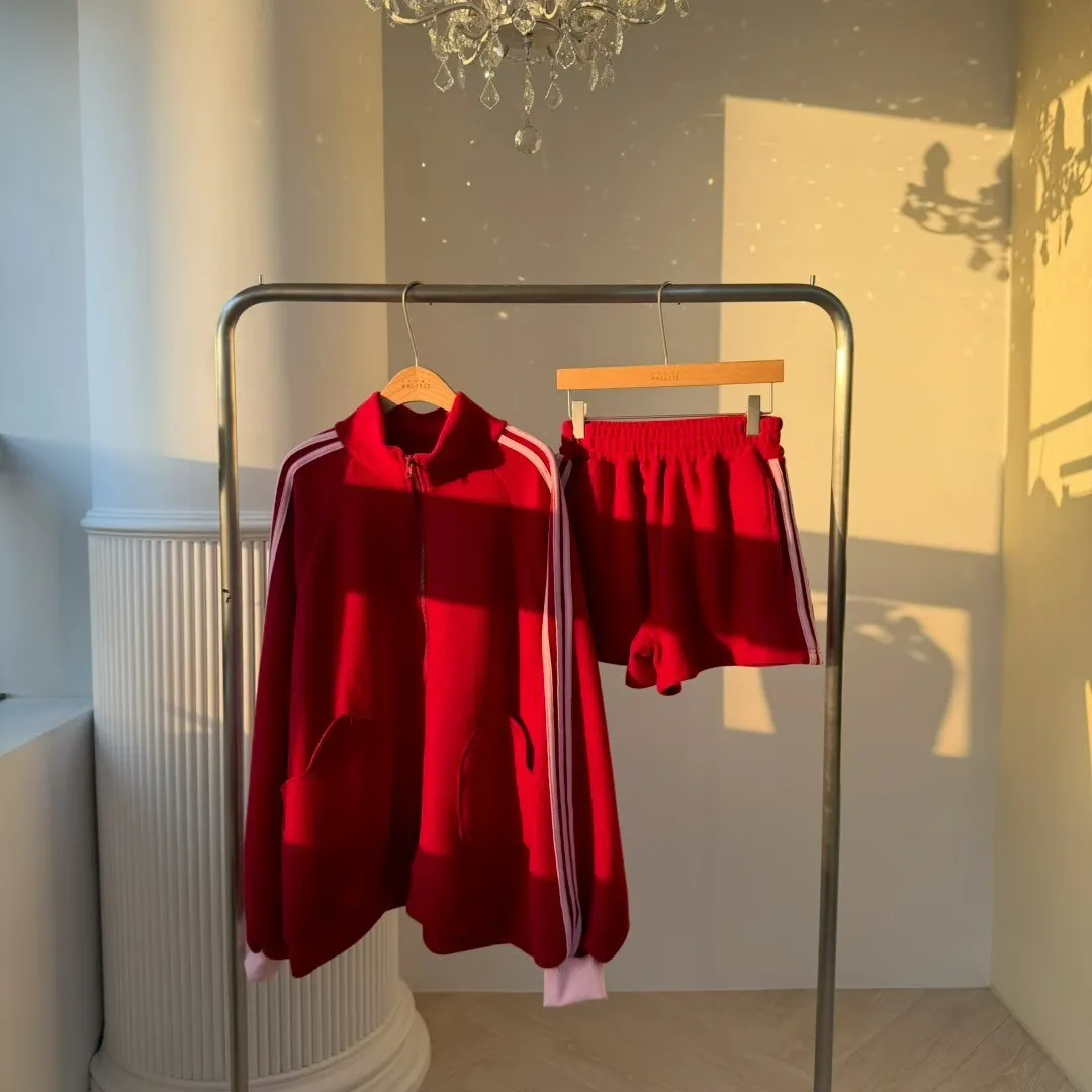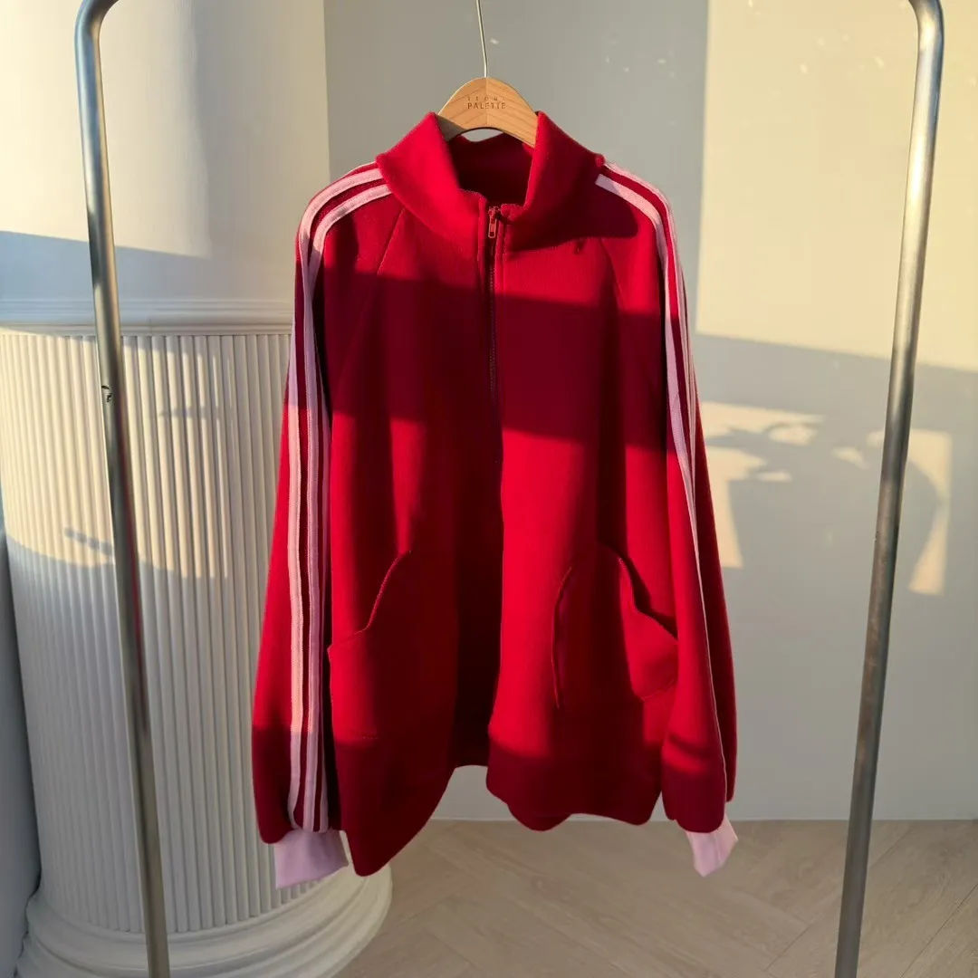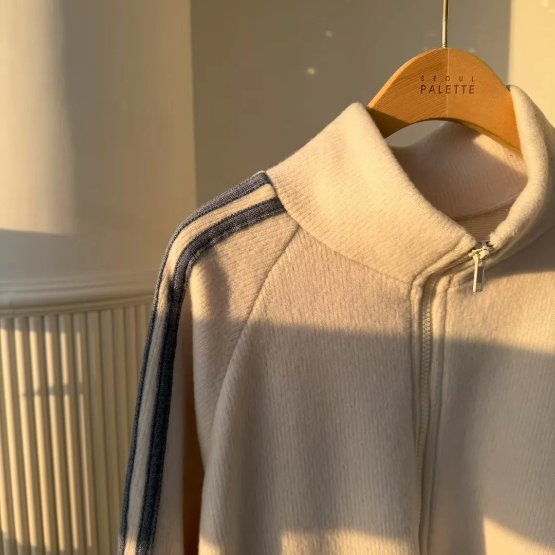 🏃♀️甜心運動風:條紋袖休閒拉鍊套裝 (Oversized Zip-Up Set)