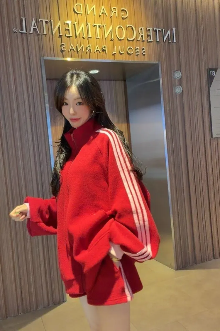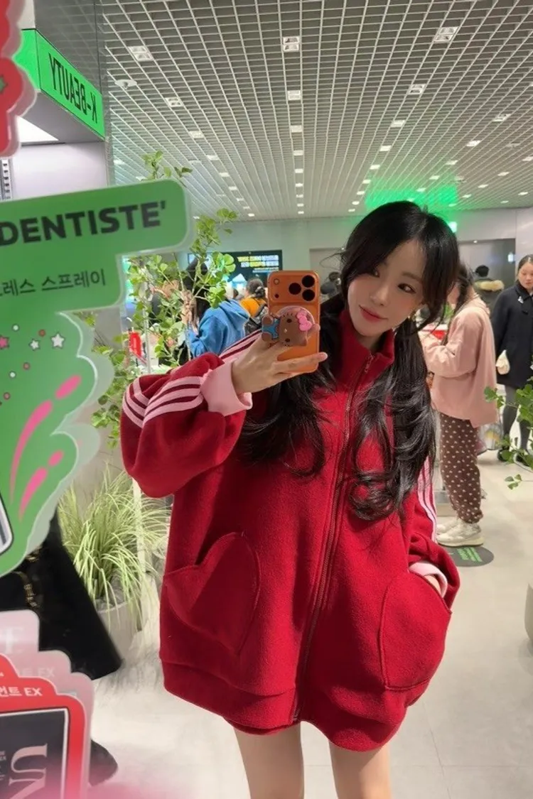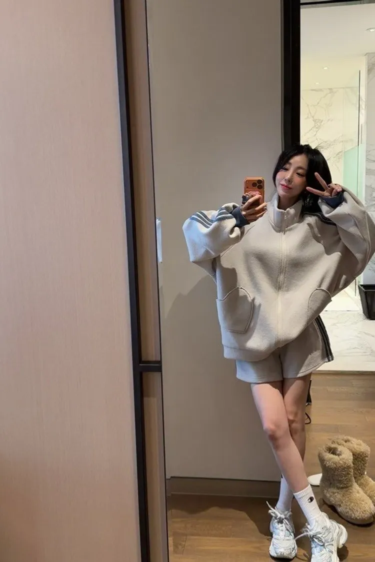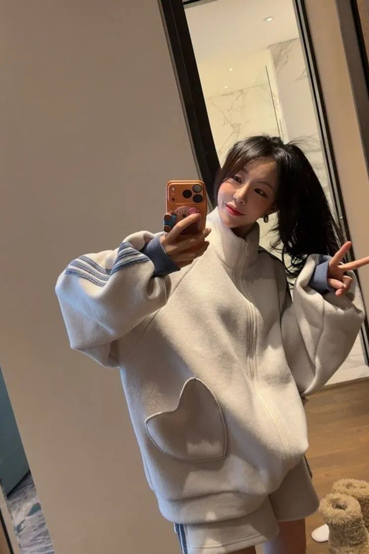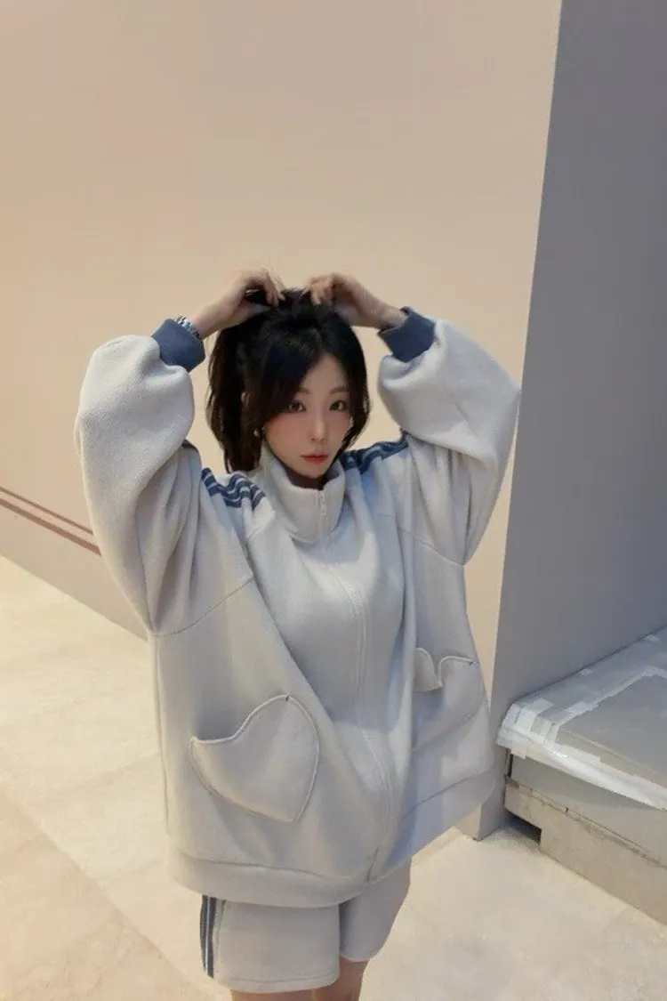 #愛心口袋 #運動套裝 #拉鍊外套 #韓系穿搭 #寬鬆顯瘦 #休閒套裝 #甜美運動風