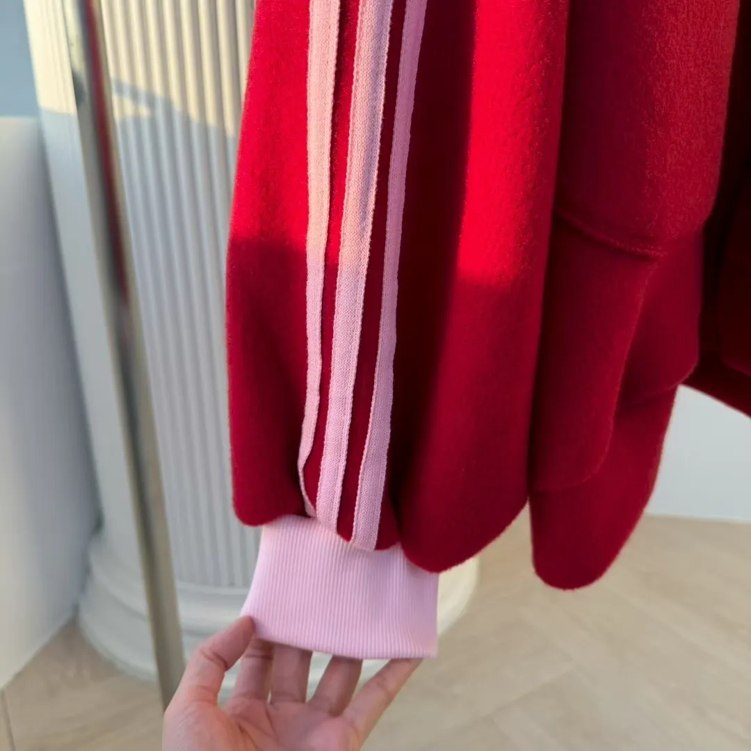 ✨撞色運動條紋:袖子上的撞色條紋,增添了經典的運動活力感,讓整體造型充滿青春氣息!