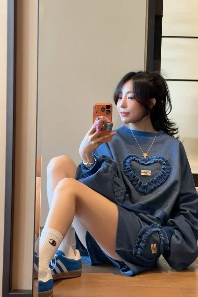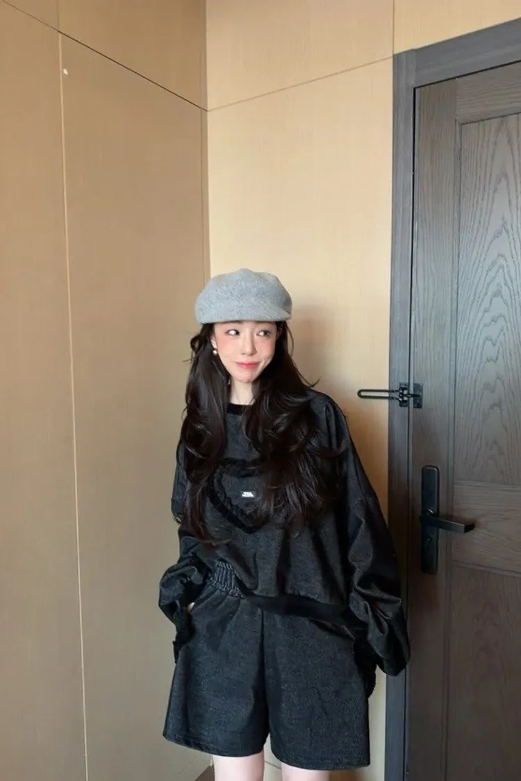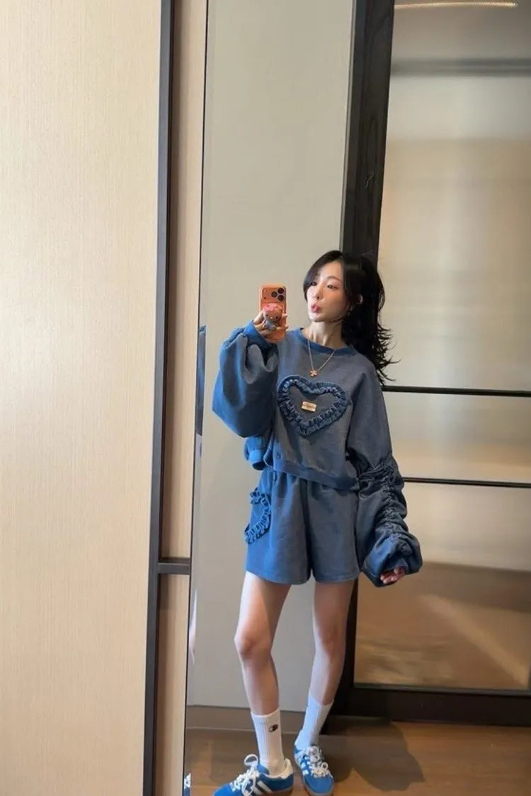 💘套裝優勢:上衣是短版寬鬆衛衣,搭配同材質的高腰短褲,一鍵完成時髦又顯腿長的 Look!