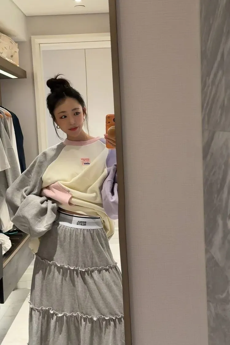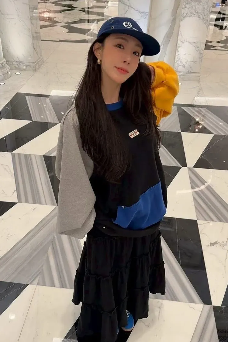 霧感麻灰:它能中和上半身多色拼接的強烈感,讓整個人看起來清爽且溫柔。