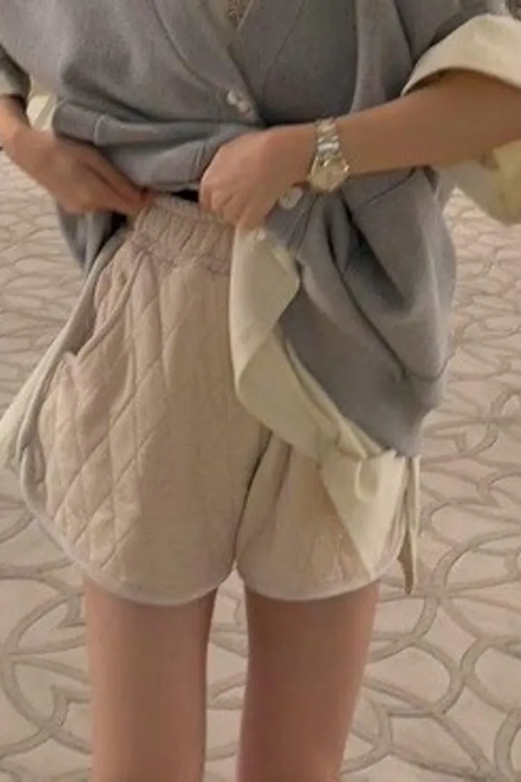 ☑️#雲朵菱格短褲 蓬鬆的絎縫質感,修飾腿部線條效果滿分! 內搭一件寬鬆大 T-shirt,輕輕鬆鬆完成「下半身失蹤」的層次感穿搭。