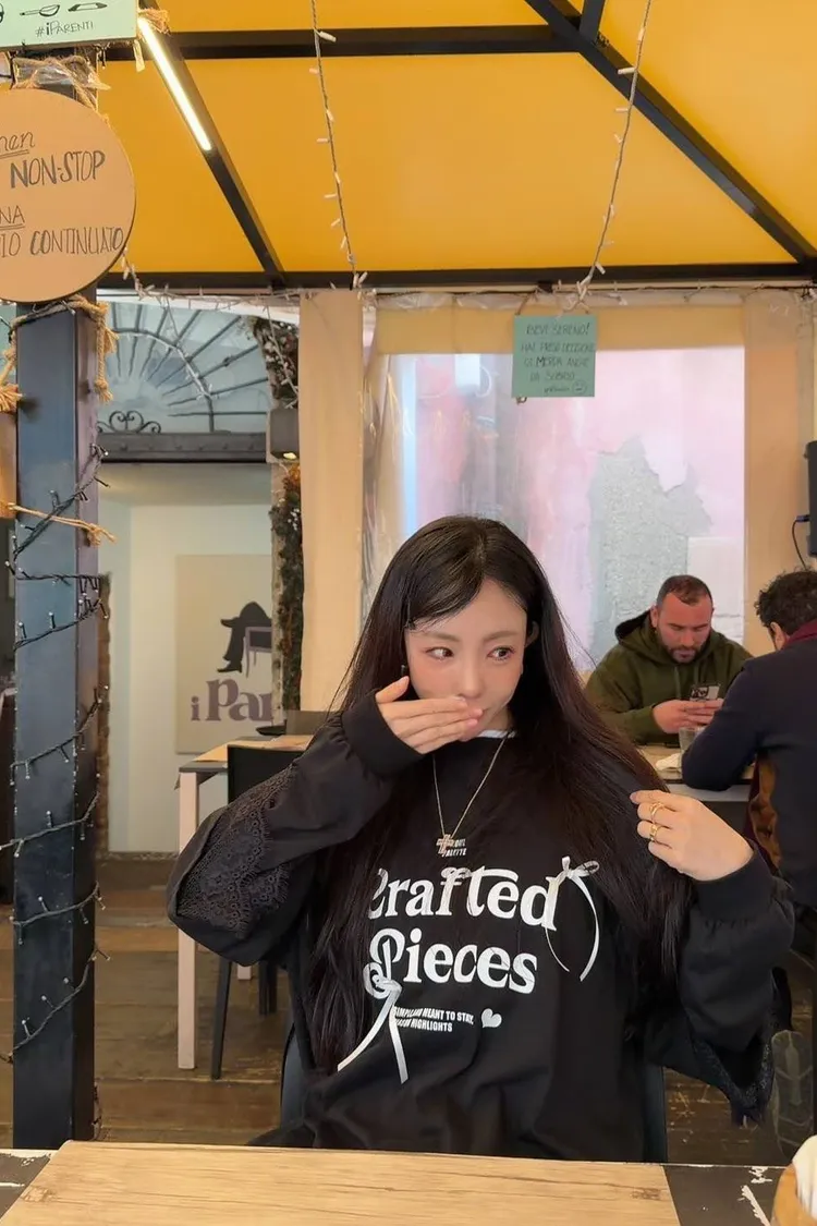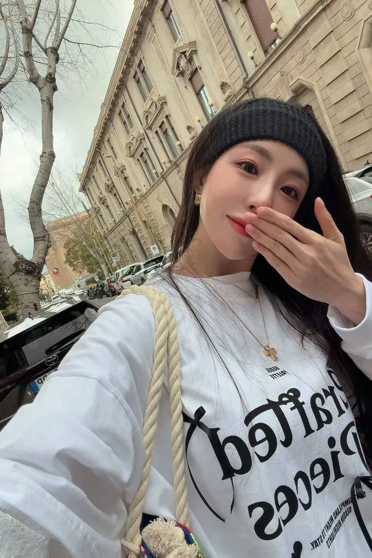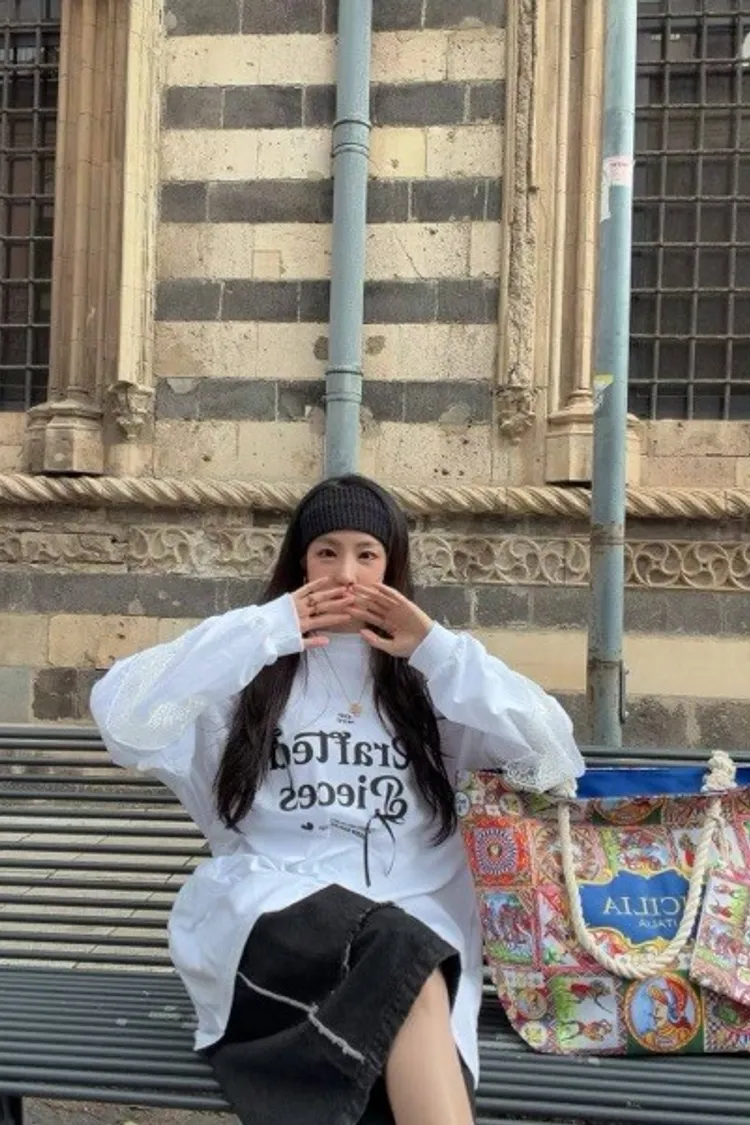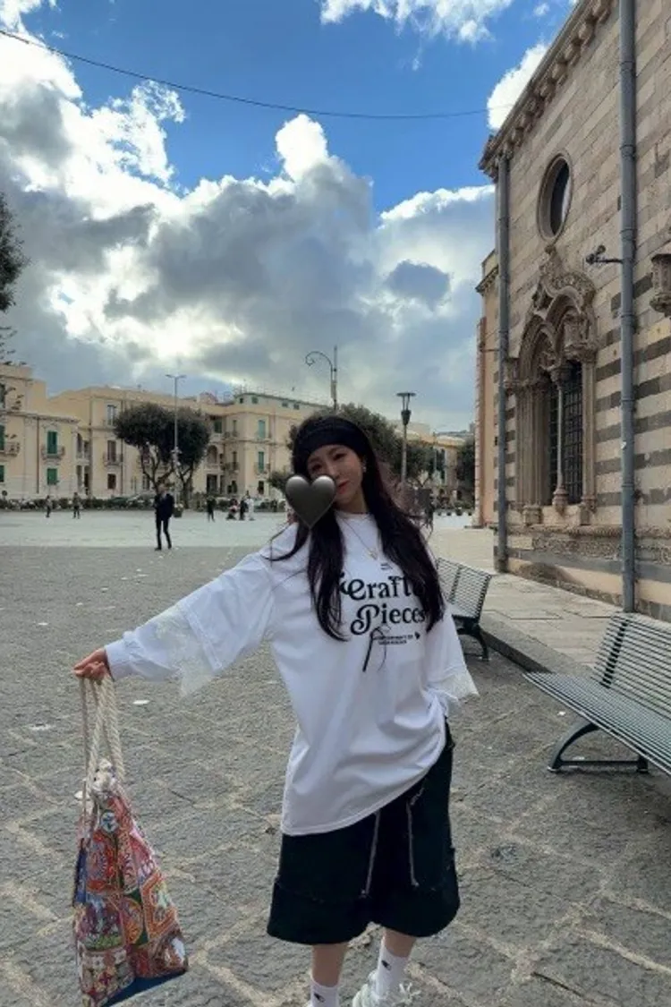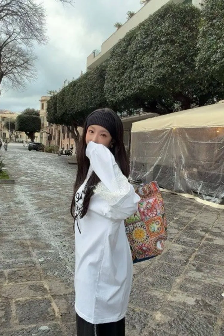 利用袖口的蕾絲拼接與立體緞帶蝴蝶結,打破傳統長 T 的單調感,讓穿搭更具層次與設計張力。