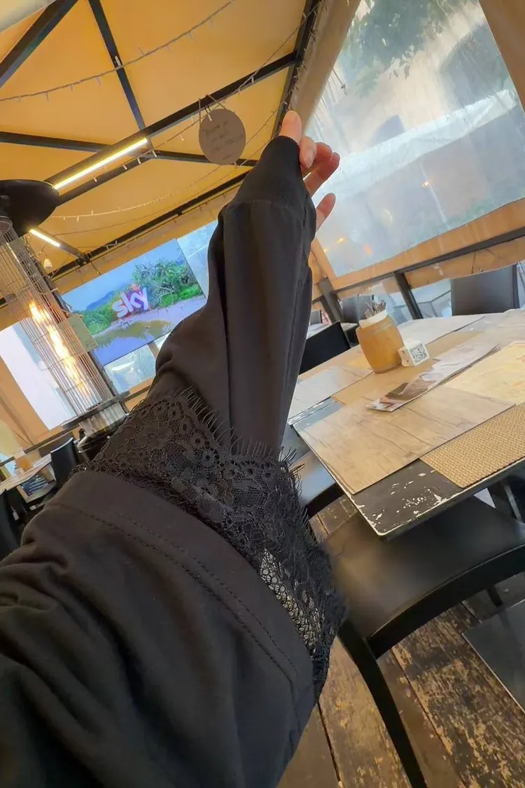 ✅層次感爆棚:袖口拼接精緻蕾絲,營造雙層假兩件視覺感。