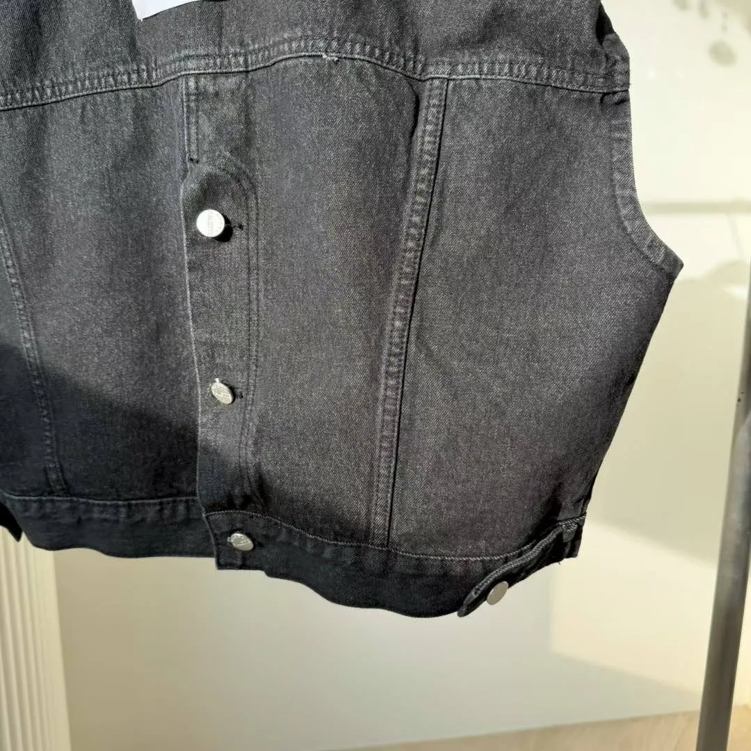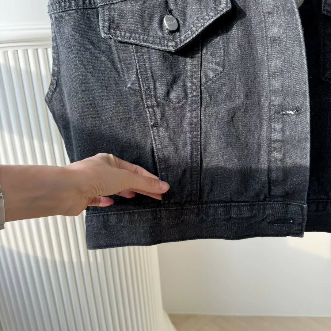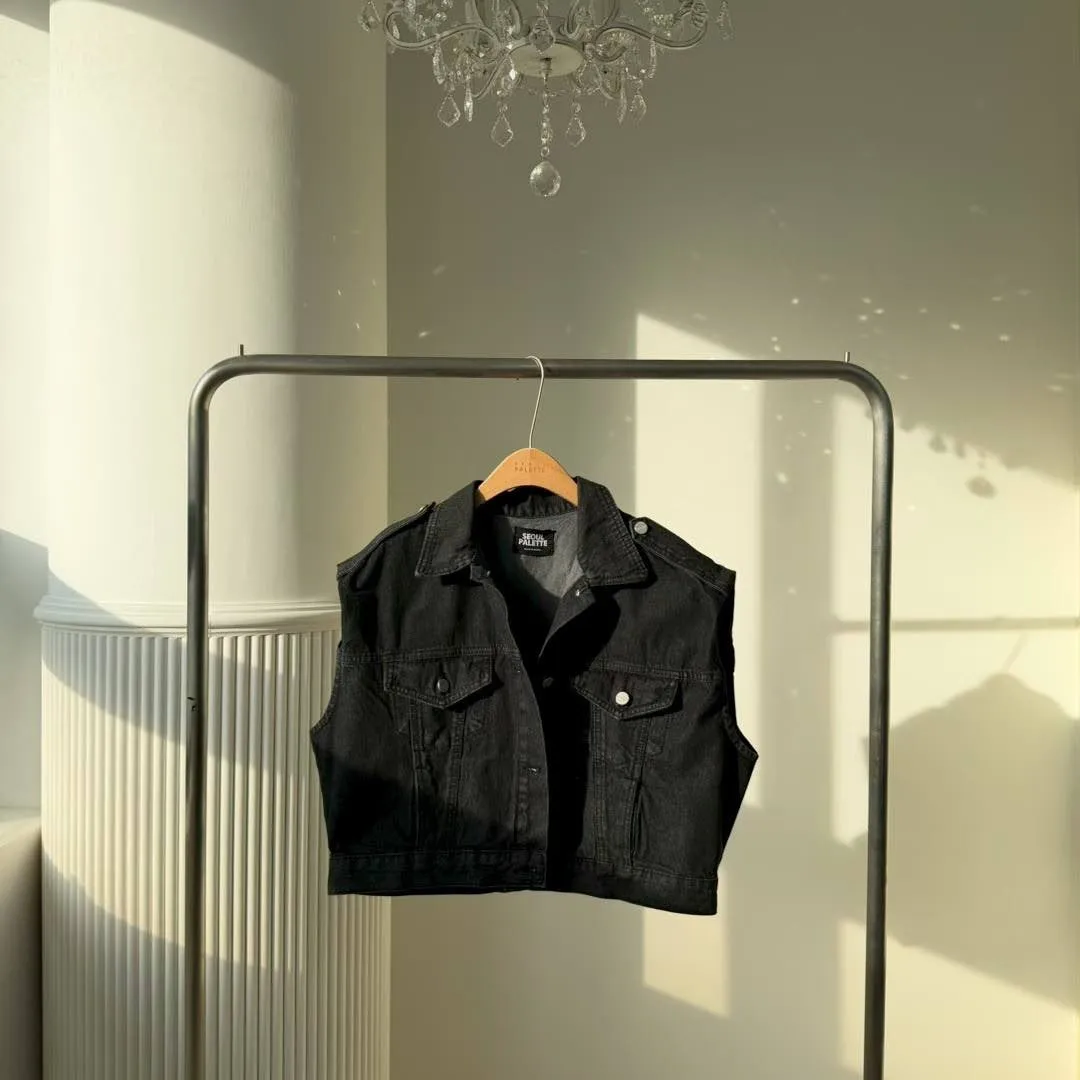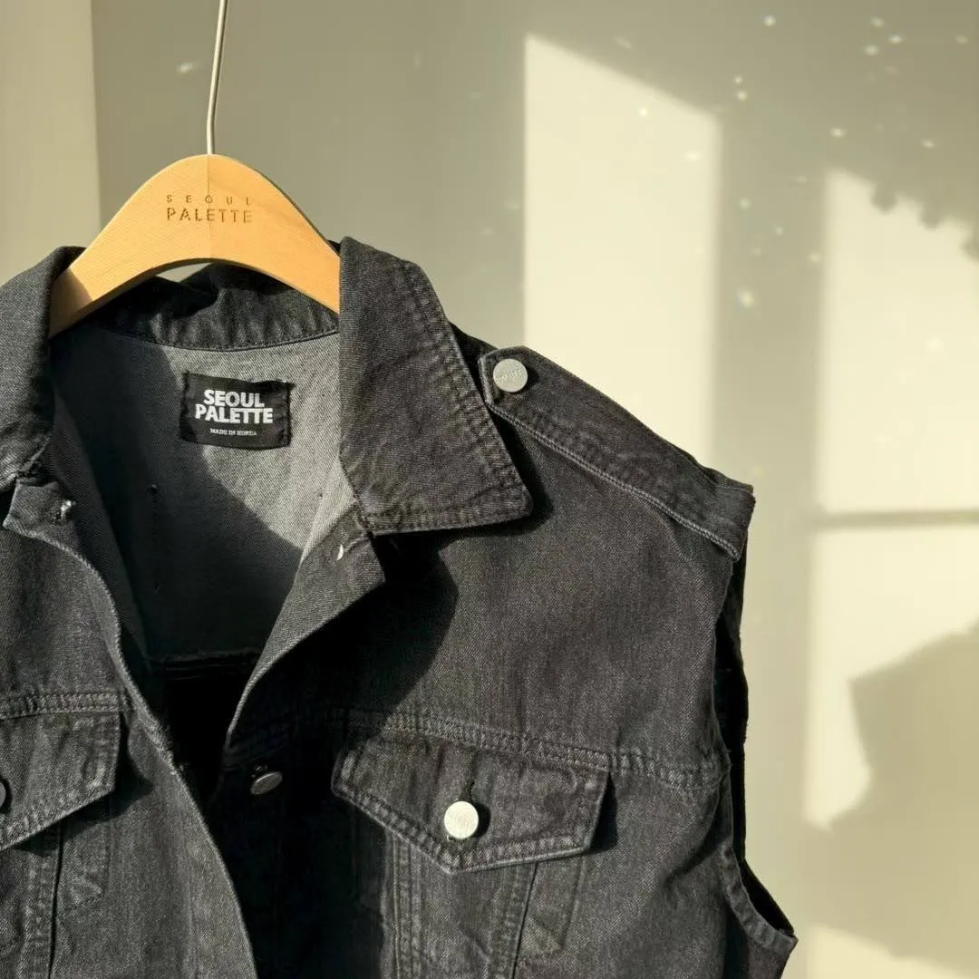 首爾街頭:SEOUL PALETTE 標籤後排扣黑洗色寬肩丹寧背心