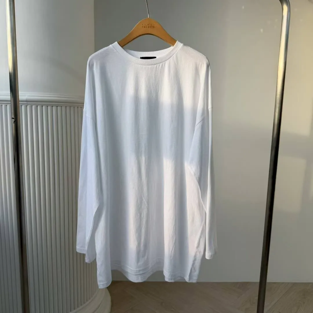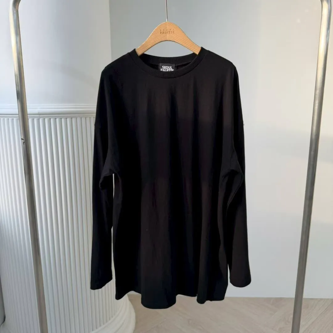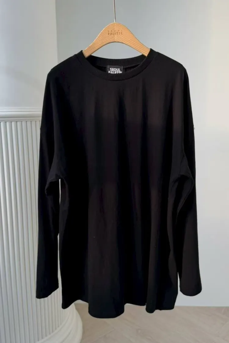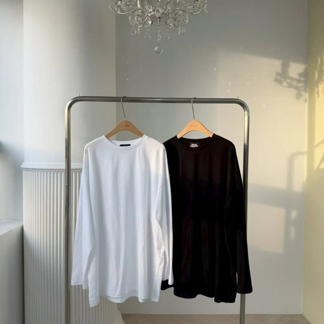 【Seoul Focus】極簡大廓型落肩長袖 T-shirt(黑/白兩色)