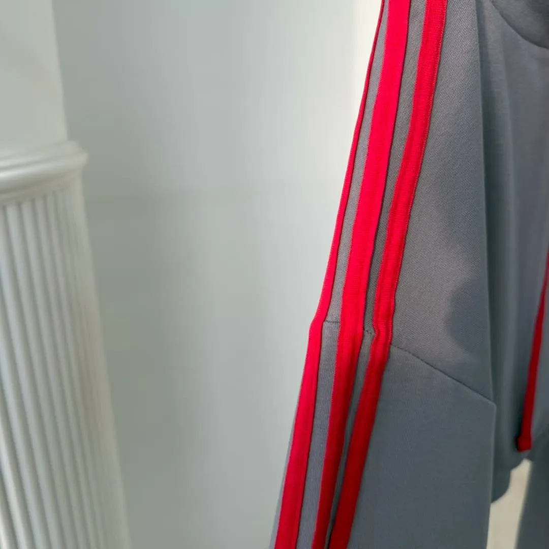 結合美式校園復古的三線條紋元素,呈現出既慵懶又具備時尚度的街頭風格。