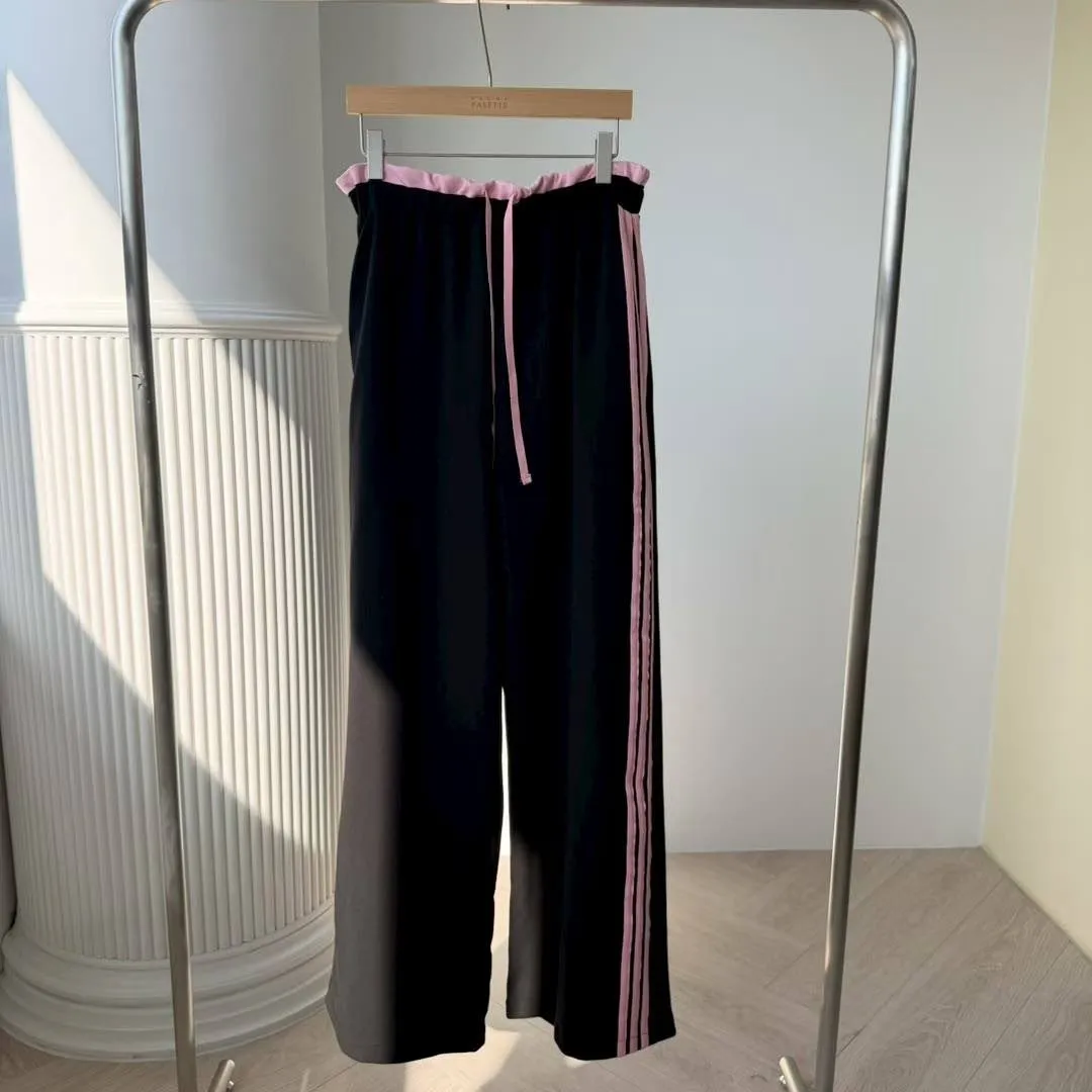 ☘️剪裁設計:上衣為短版寬鬆剪裁,拉長下半身比例;長褲採用高腰直筒寬版設計,包容性極佳。