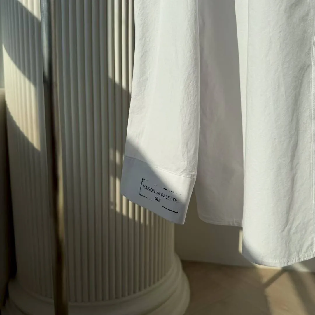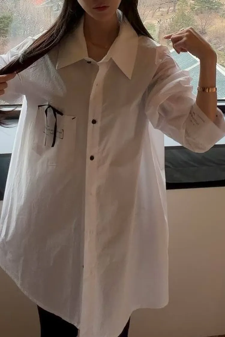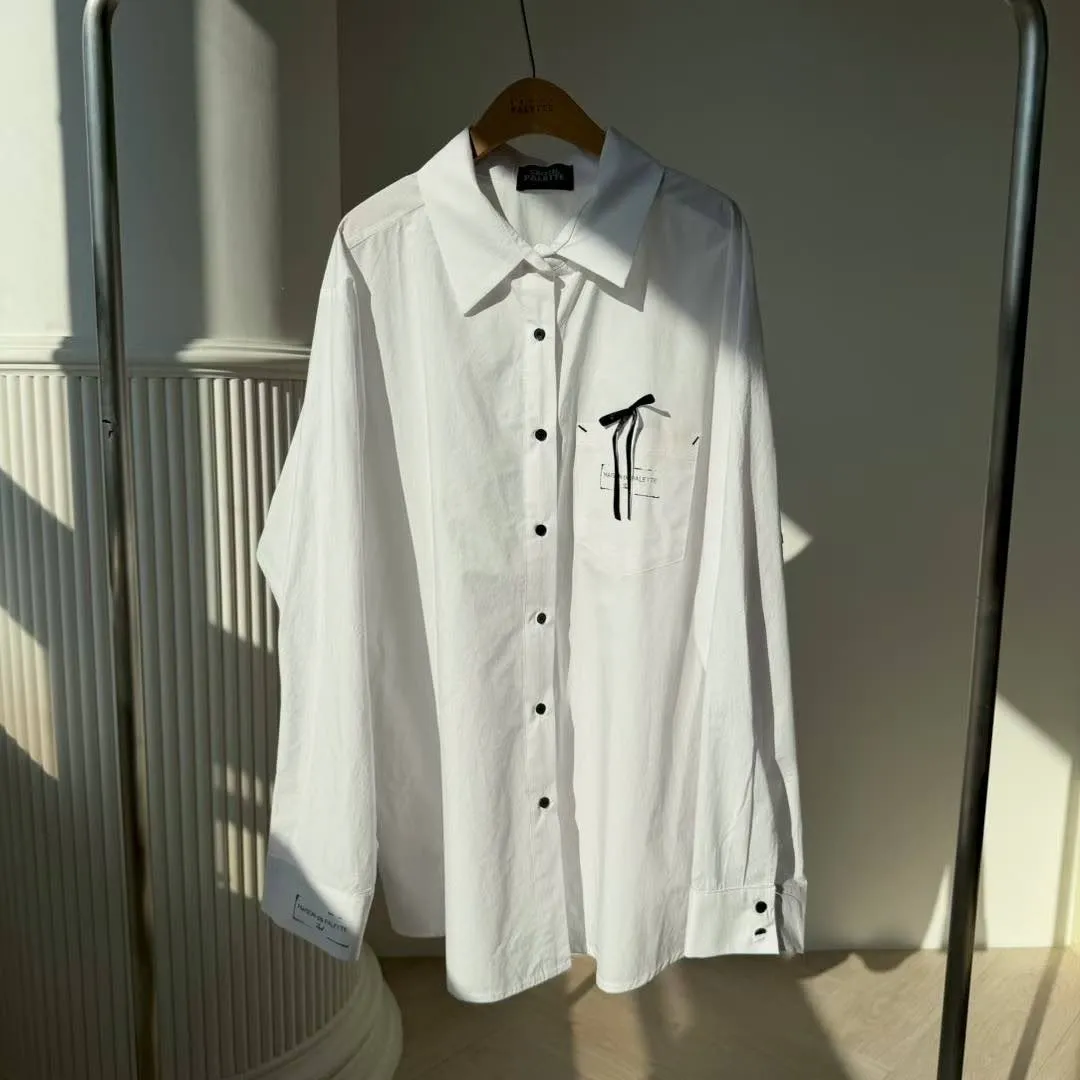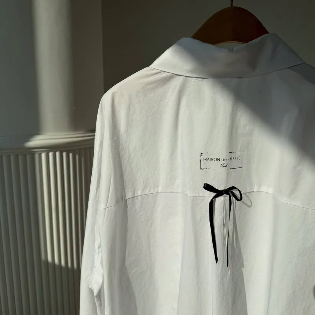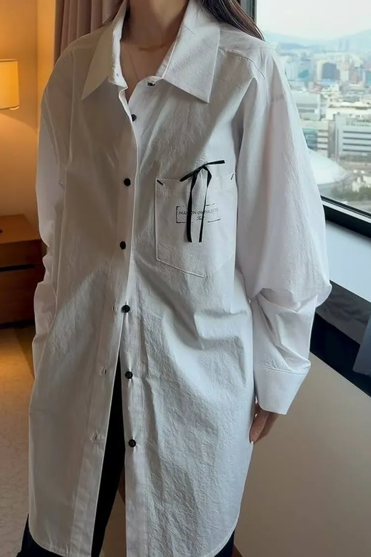 【法式緞帶刺繡長版襯衫】