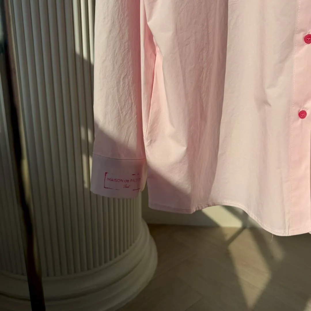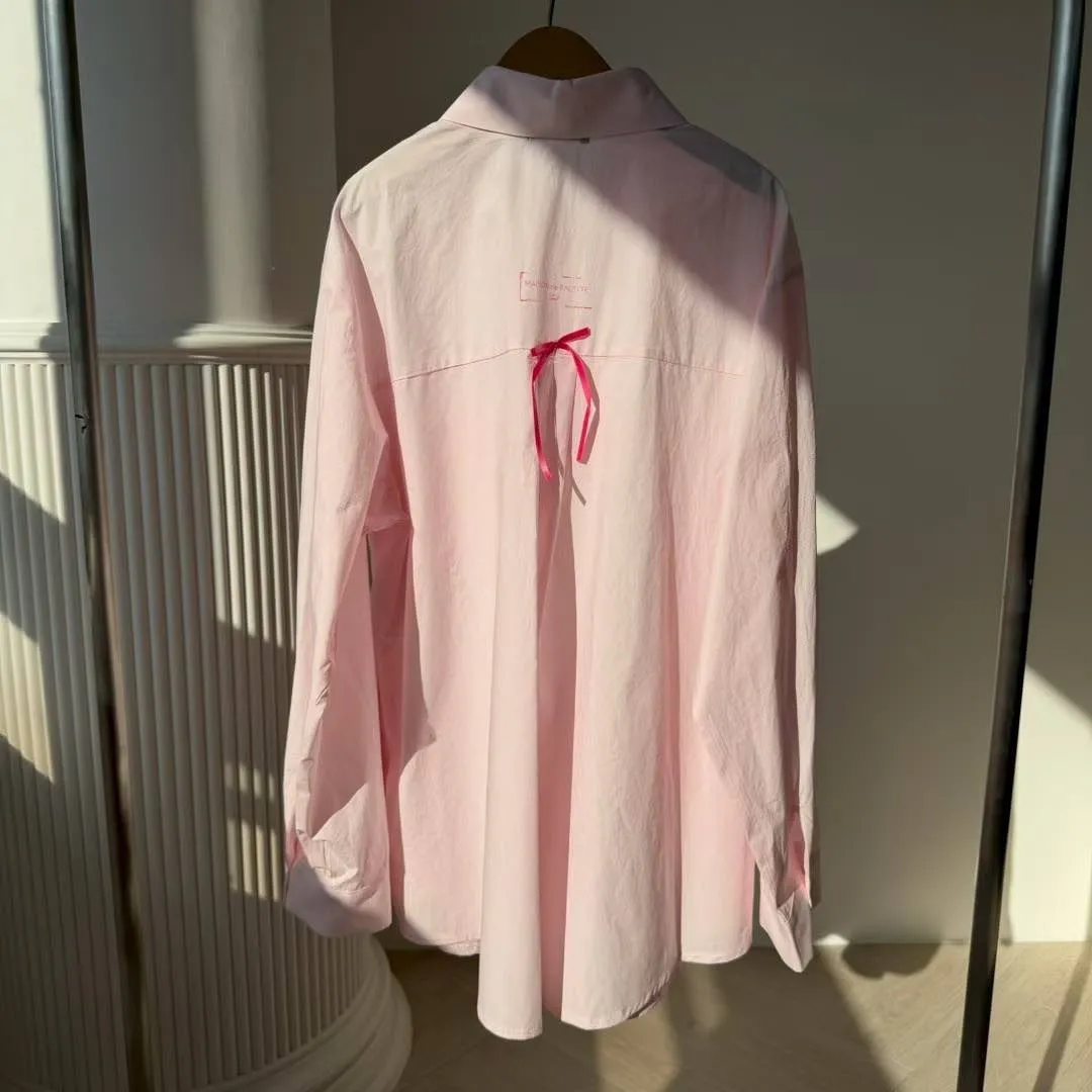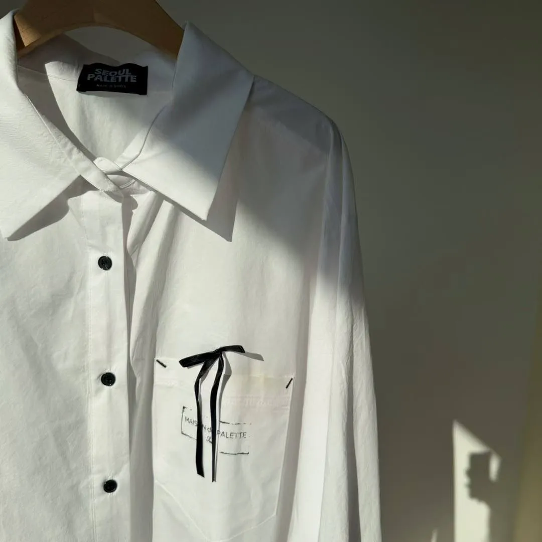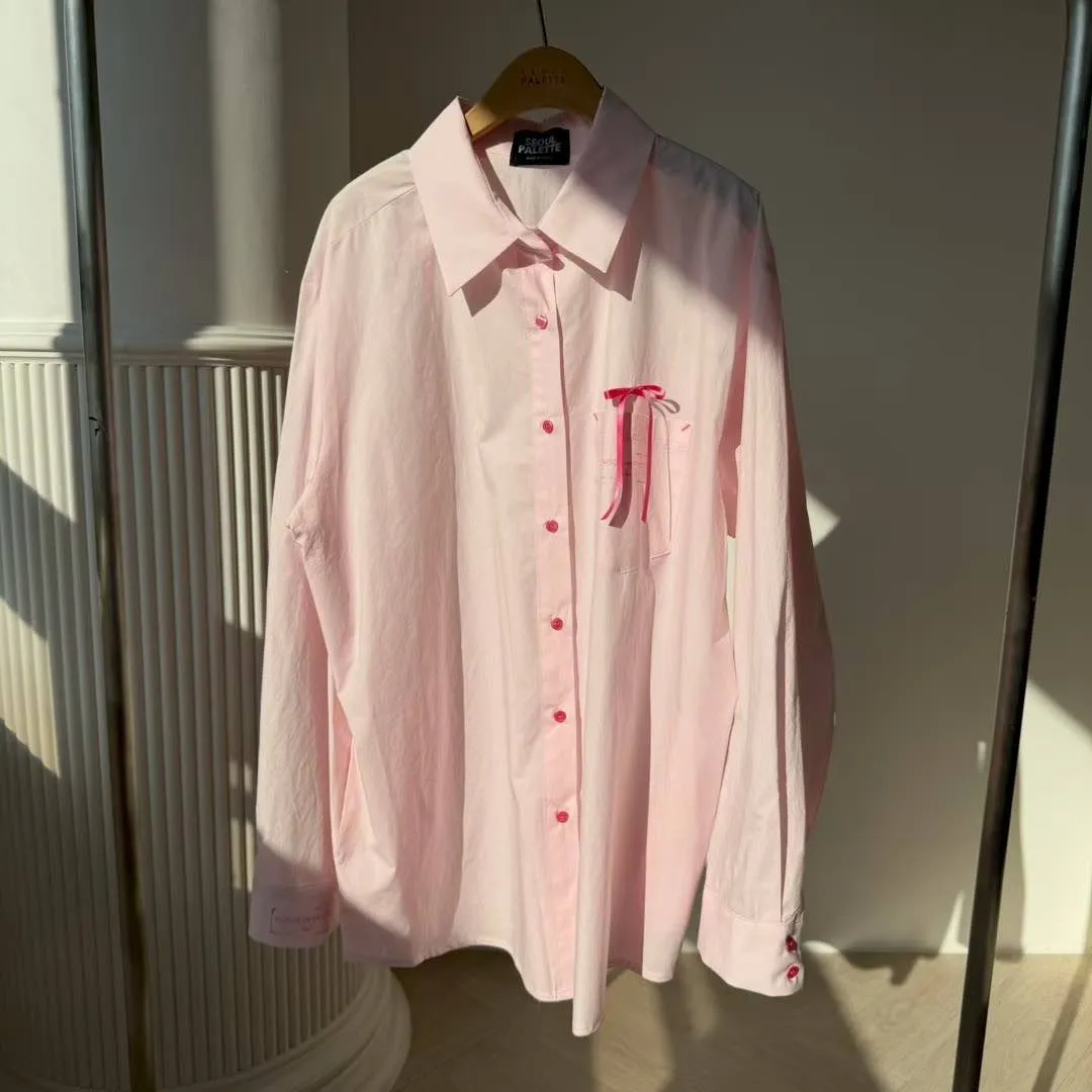 🖤襯衫:法式緞帶刺繡長版襯衫 (White/Pink)