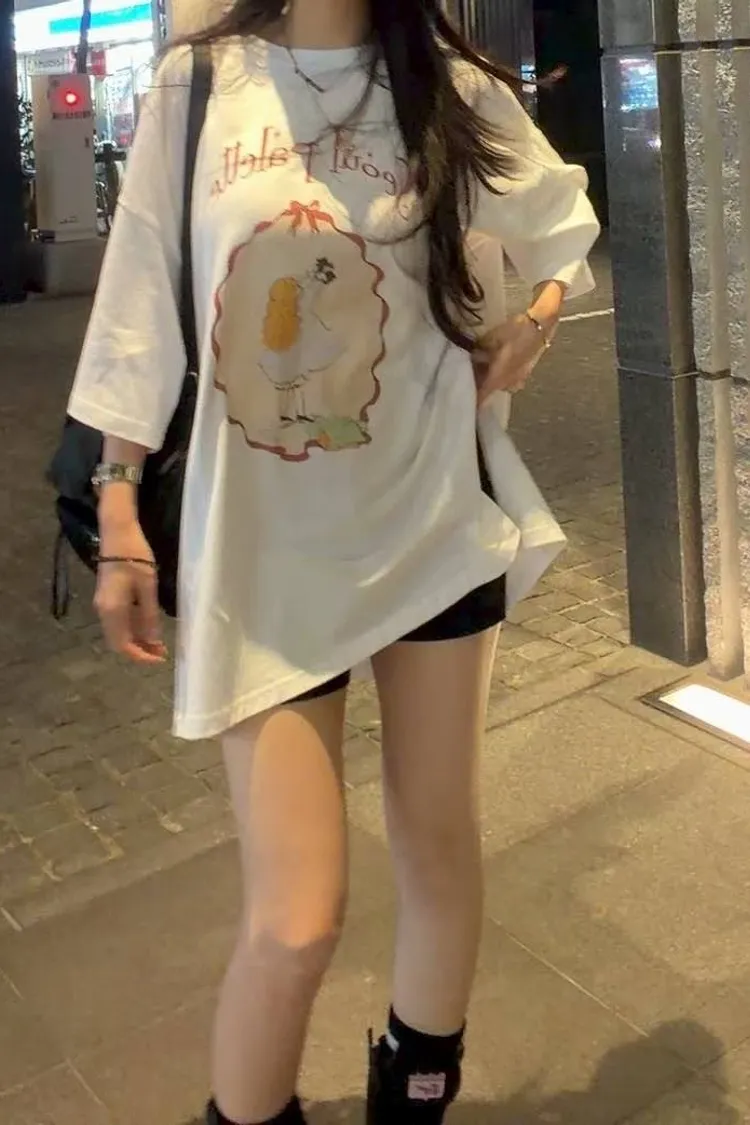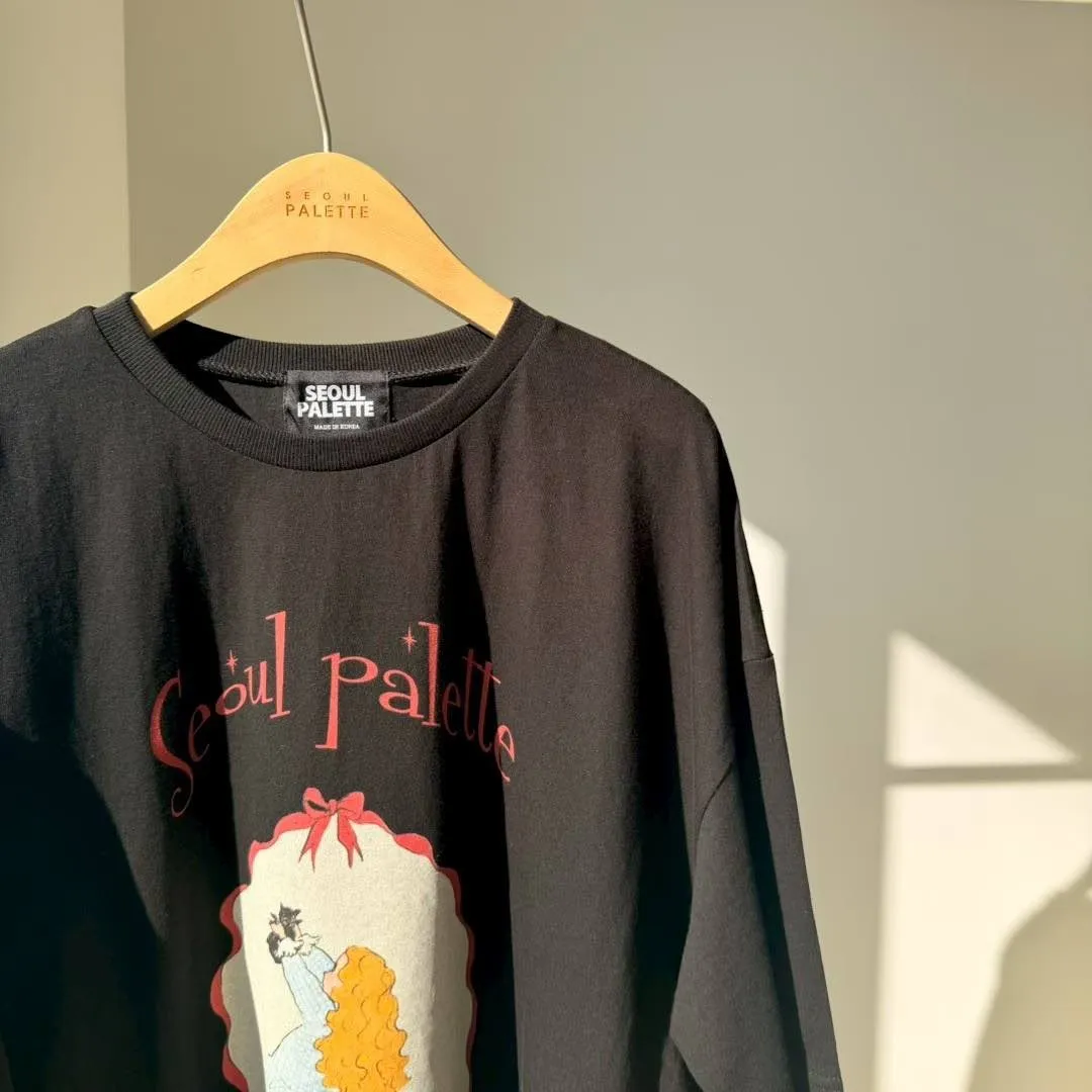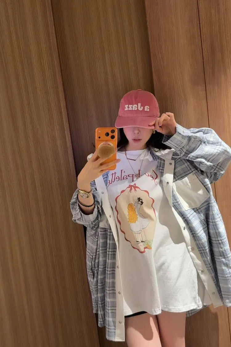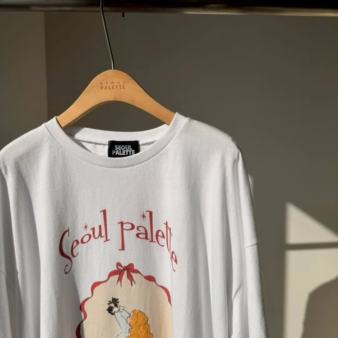 美式復古與韓系少女感的完美結合 🎀 大大的寬版剪裁,胸前的精緻人像圖案點綴出復古氛圍。 不管是搭配小短褲玩「下身失蹤」,還是隨意紮進牛仔褲,都非常有態度。 全棉材質親膚透氣,出國旅遊、逛街自拍必備的百搭單品!