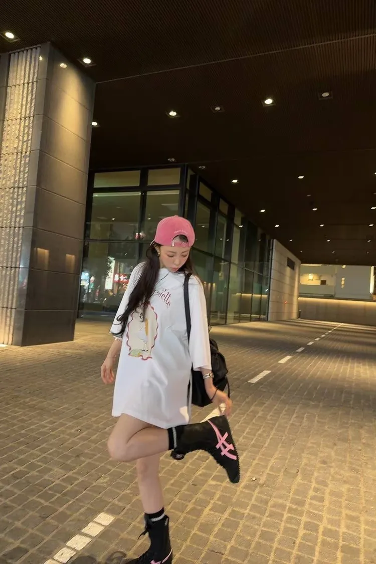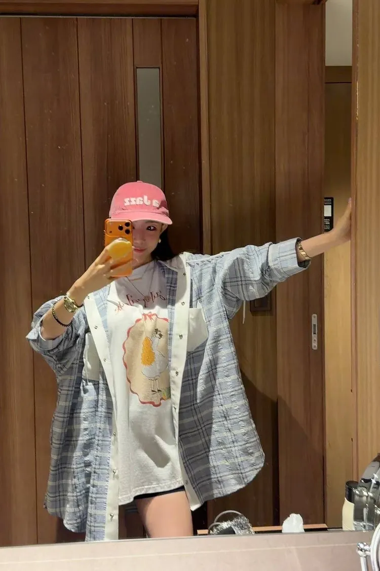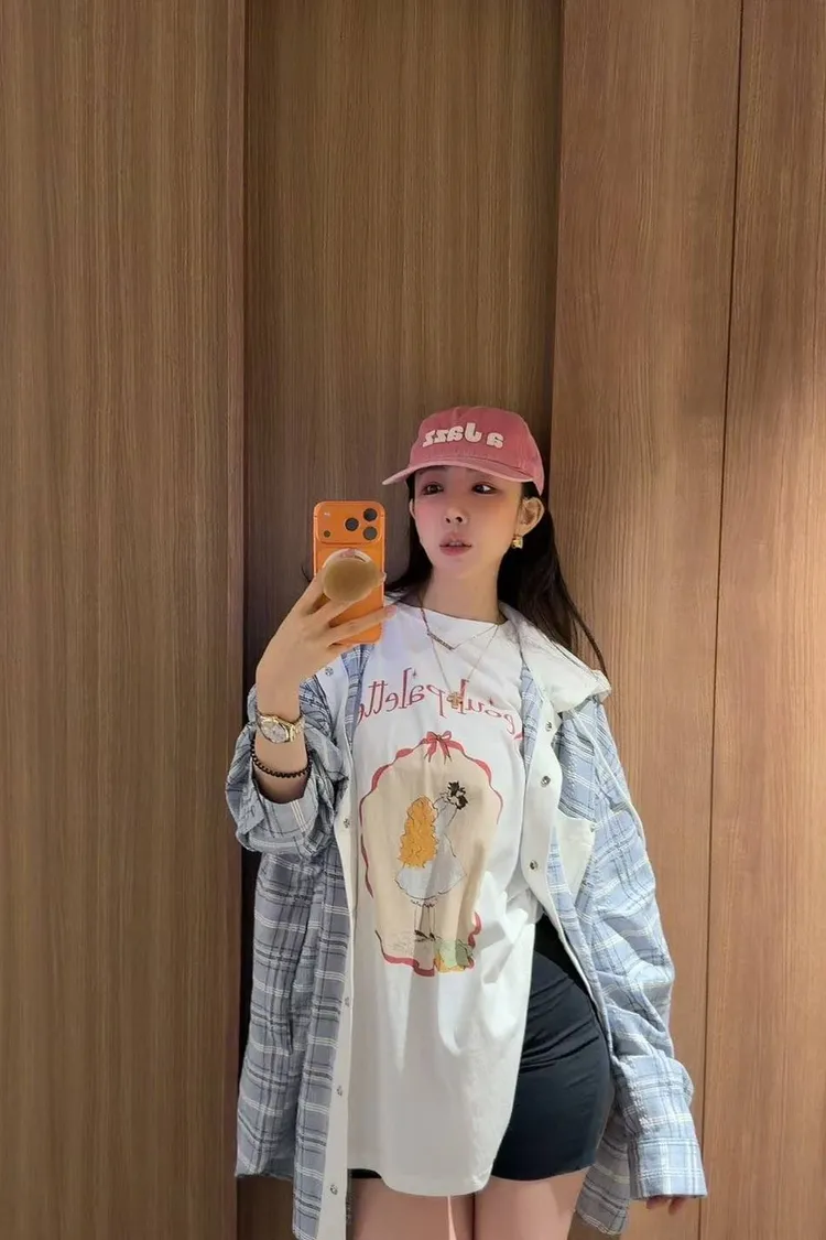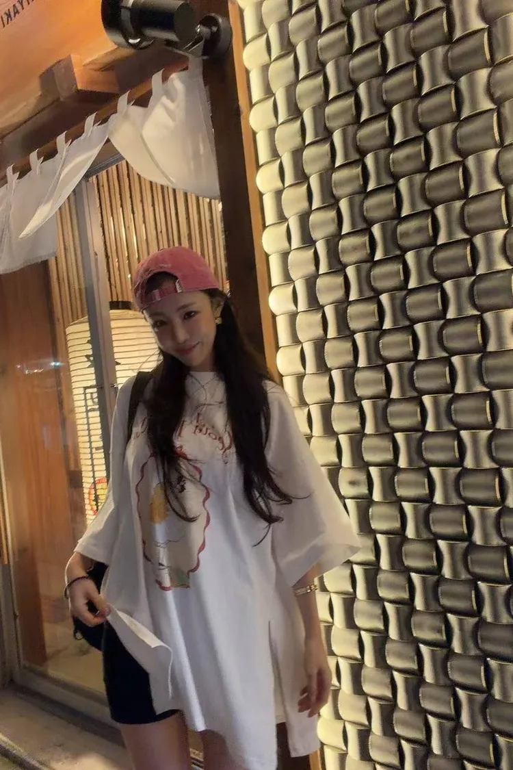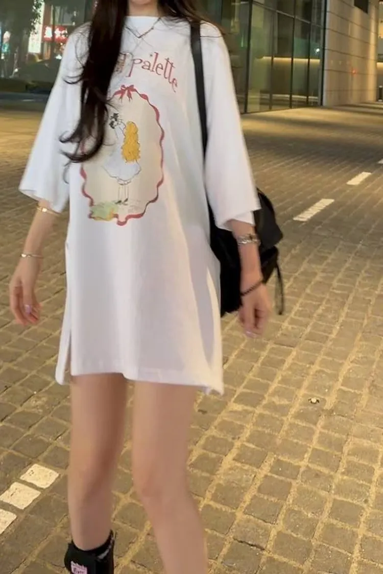 美式復古與韓系少女感的完美結合 🎀 大大的寬版剪裁,胸前的精緻人像圖案點綴出復古氛圍。 不管是搭配小短褲玩「下身失蹤」,還是隨意紮進牛仔褲,都非常有態度。 全棉材質親膚透氣,出國旅遊、逛街自拍必備的百搭單品!