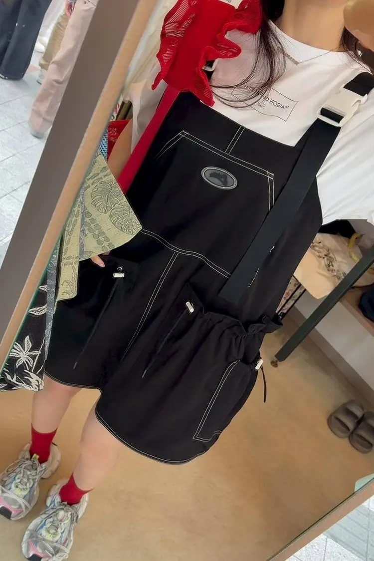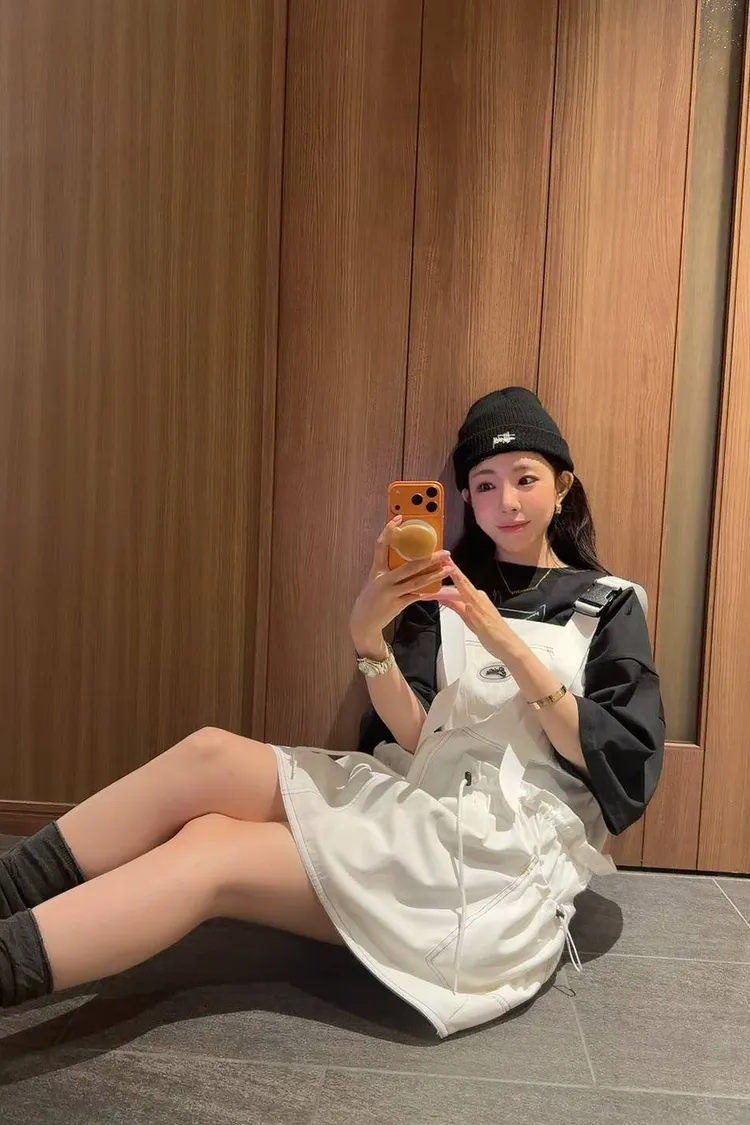 大廓型剪裁: 典型的韓系寬鬆版型,落肩設計修飾肩線。