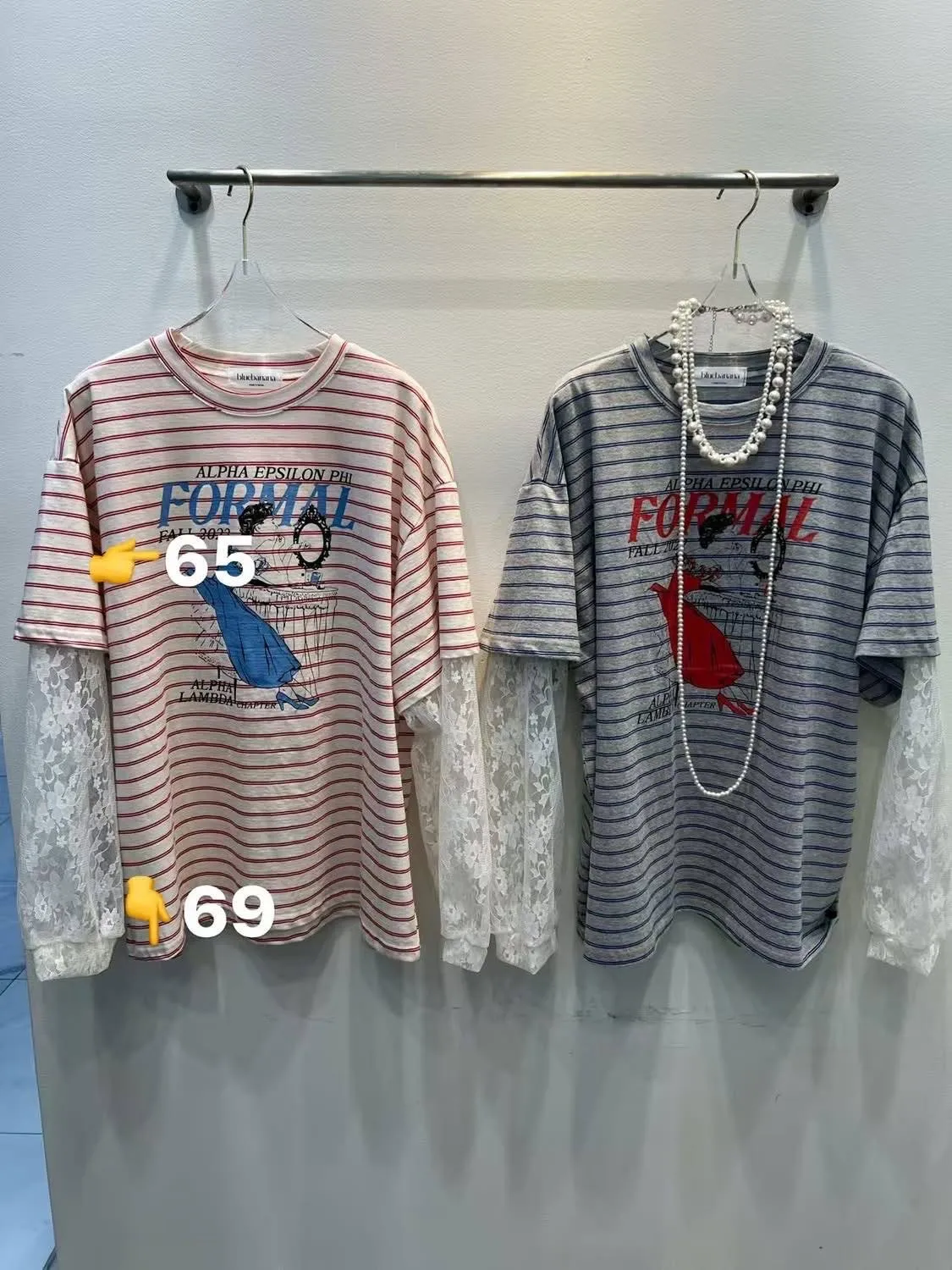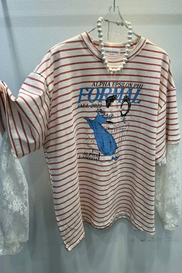 ✔️精緻蕾絲拼接: 鏤空花卉蕾絲袖口,中和了條紋的率性,多了一點溫柔的仙氣🌸