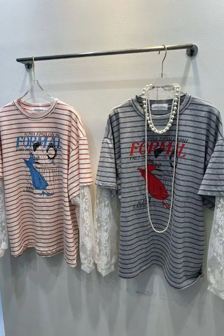 平常穿膩了普通的 T-shirt,這款「假兩件式」蕾絲拼接上衣絕對能讓你瞬間變身街頭焦點!