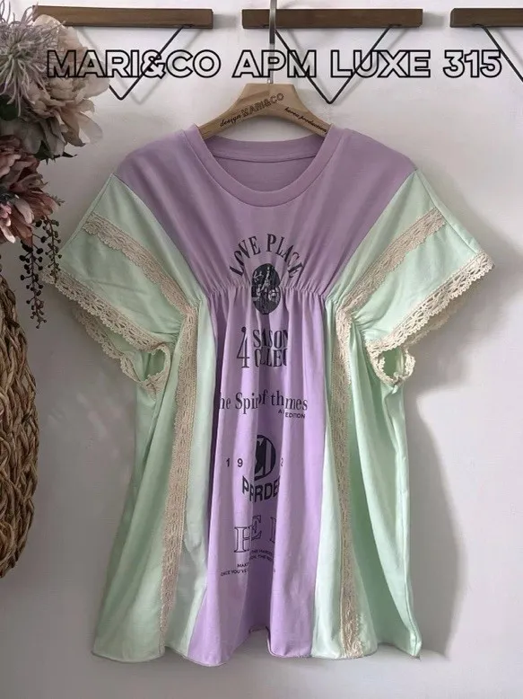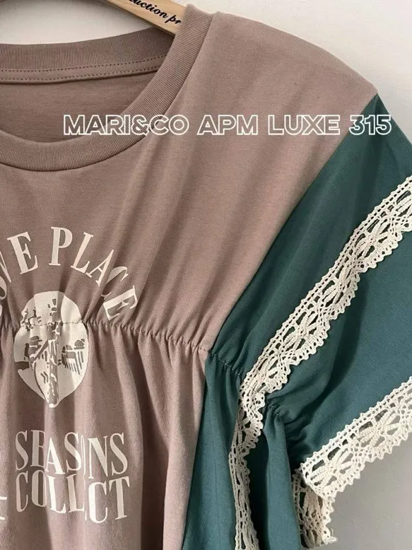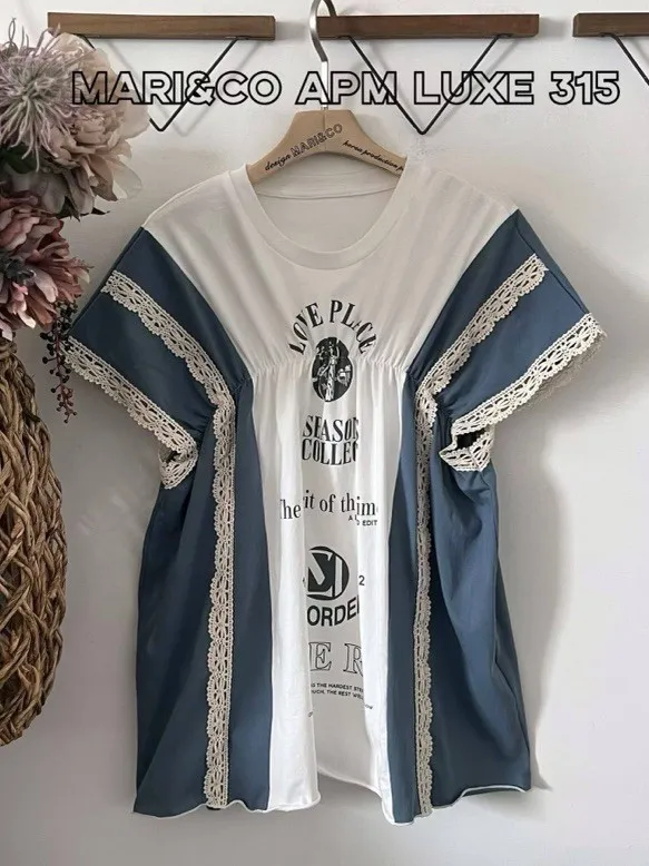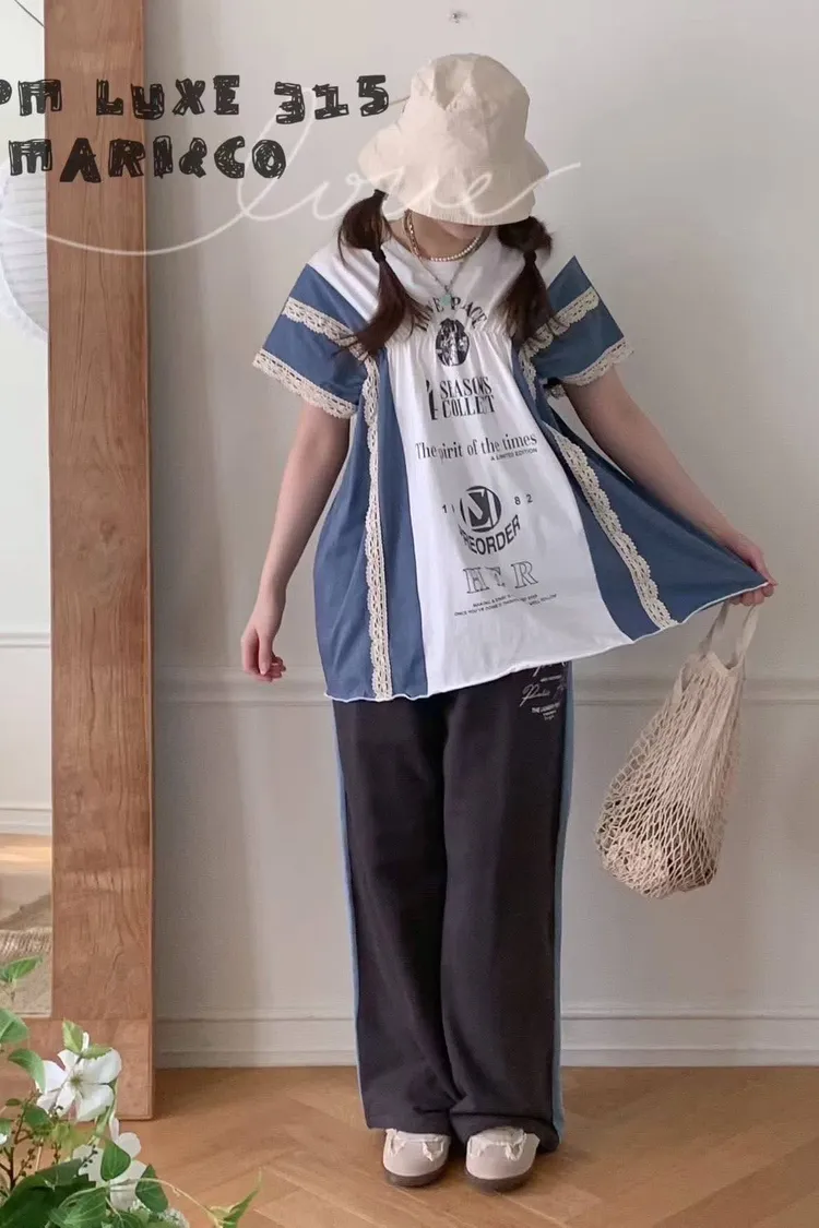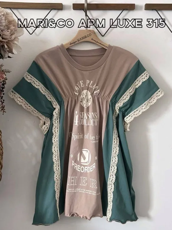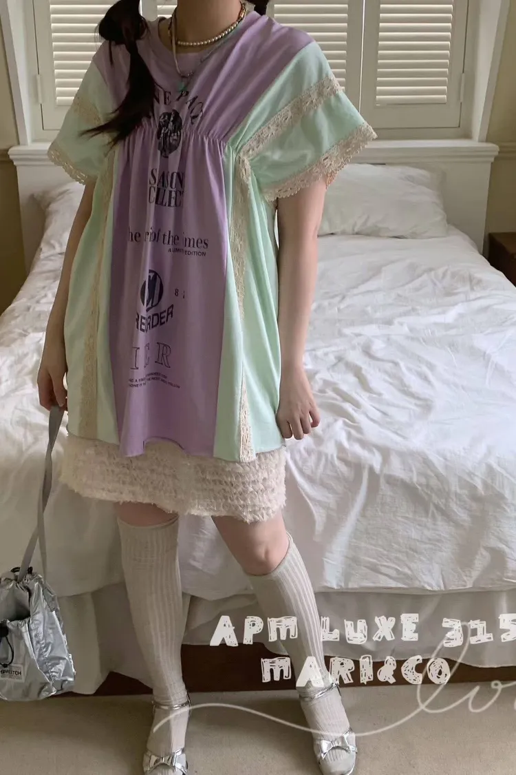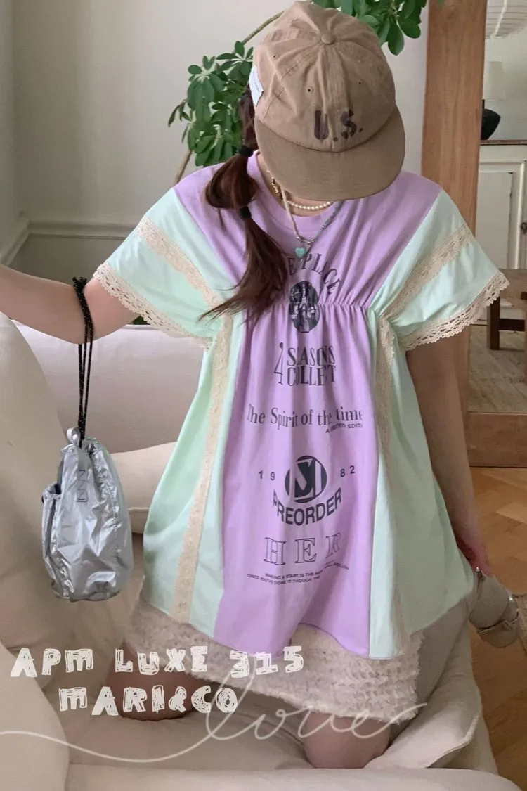 天哪!這件拼接T恤也太可愛了吧!💕 蕾絲與復古印刷的夢幻結合!