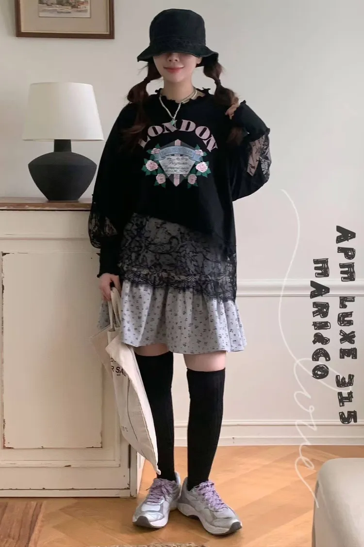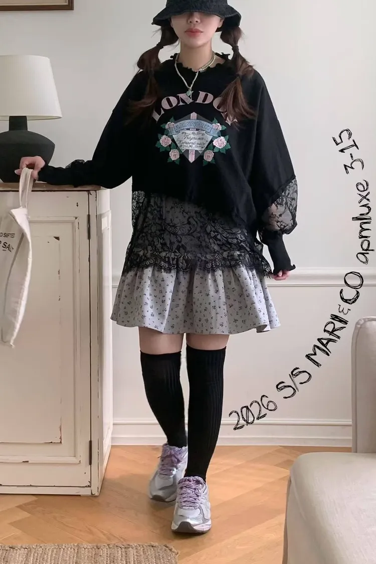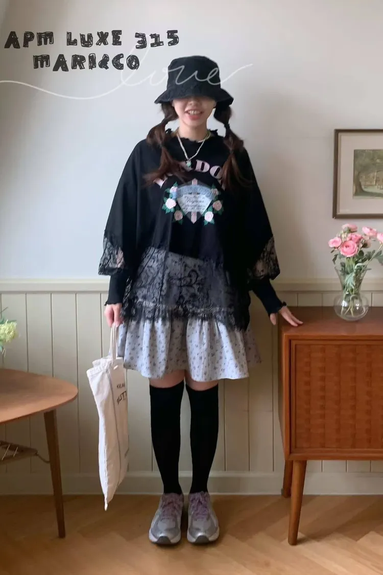 🌼下擺斜切的不規則蕾絲拼接,走動間隱約透出的層次感真的太高級了!