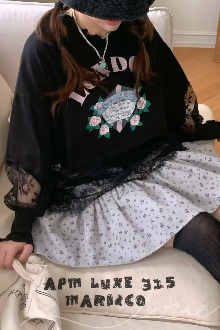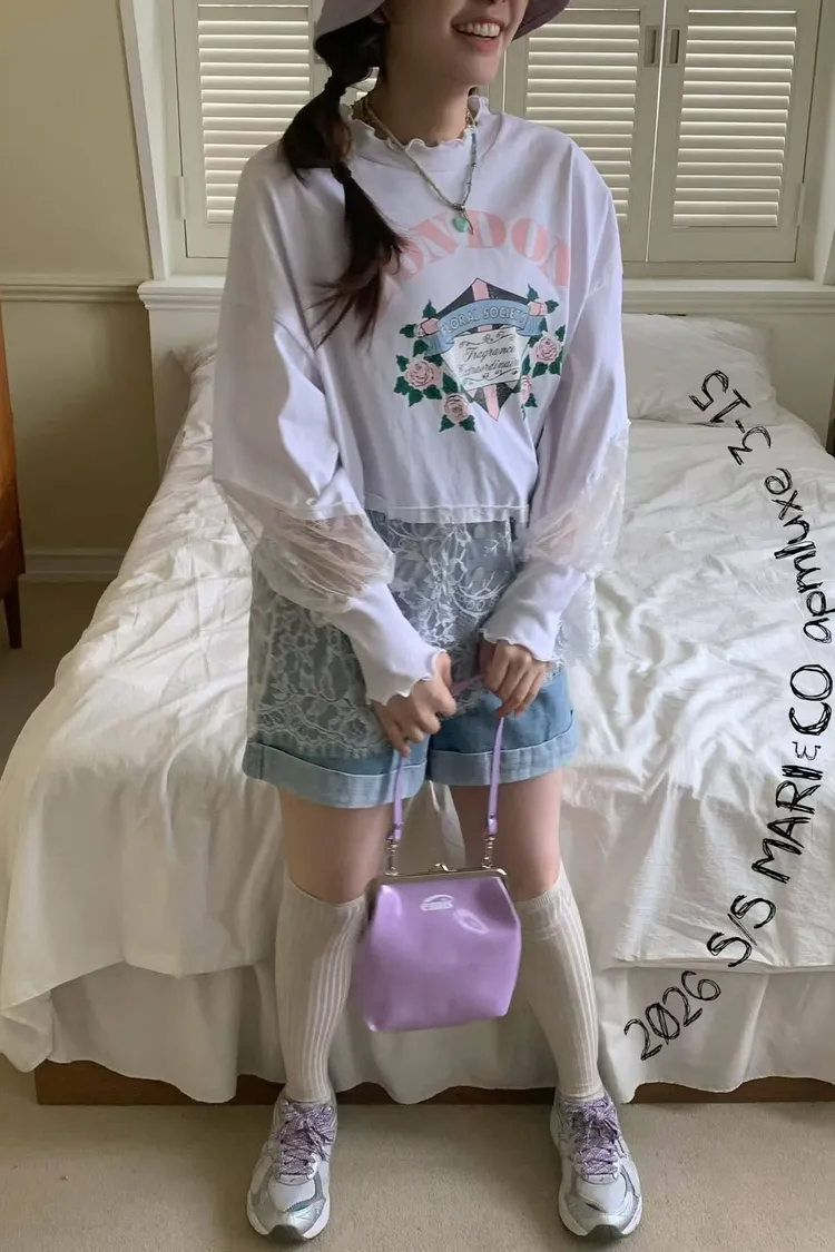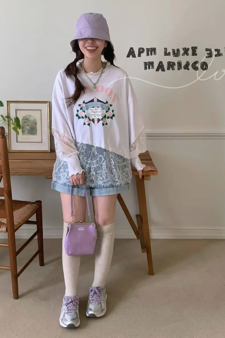 🌼最迷人的莫過於那雙層花苞袖,袖中拼接的蕾絲讓整體視覺更輕盈、更顯溫柔氣質 🩰。