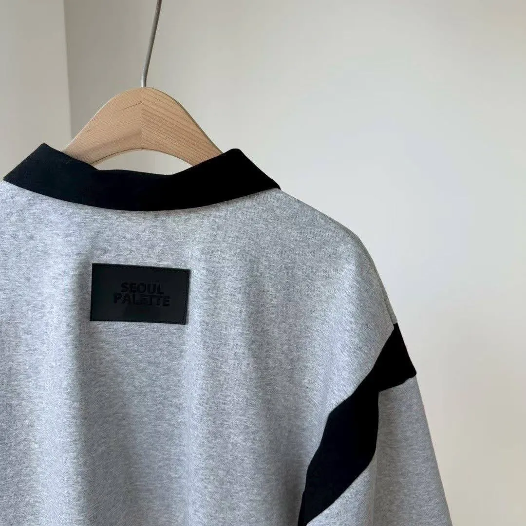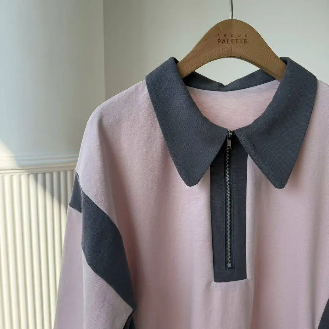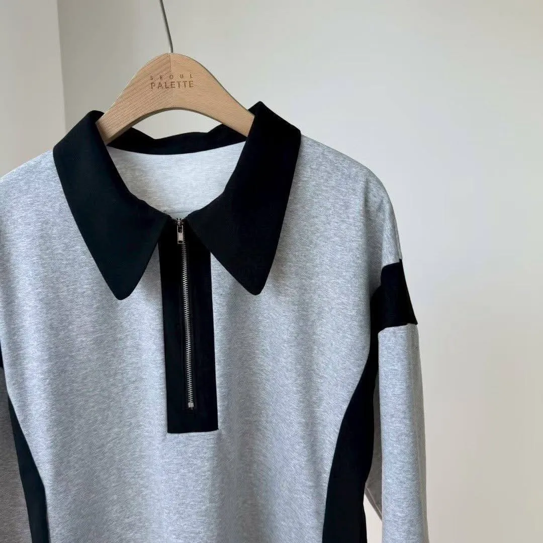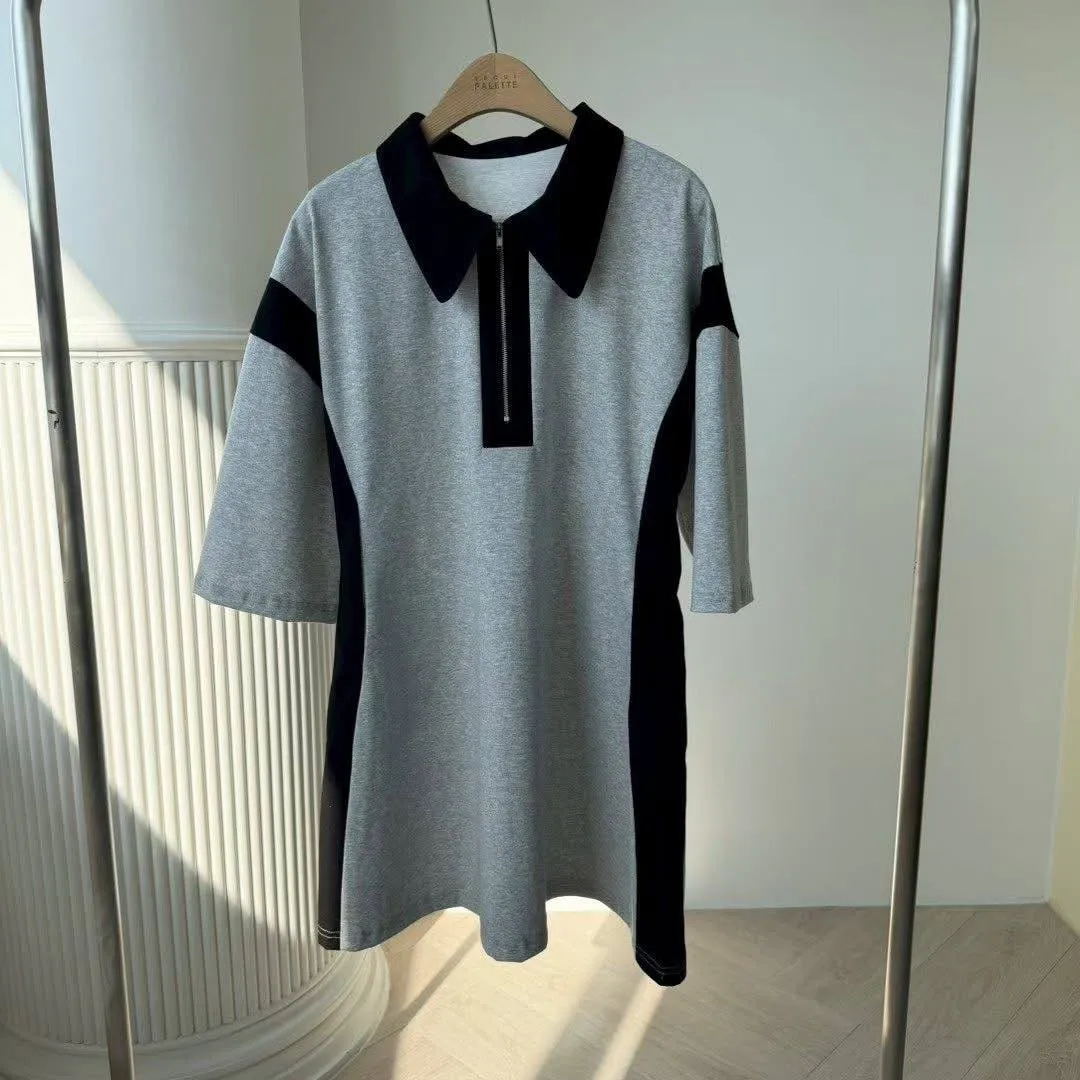 「甜酷撞色」拉鍊翻領運動風連身裙 (彈性棉質 / 雙色入)
