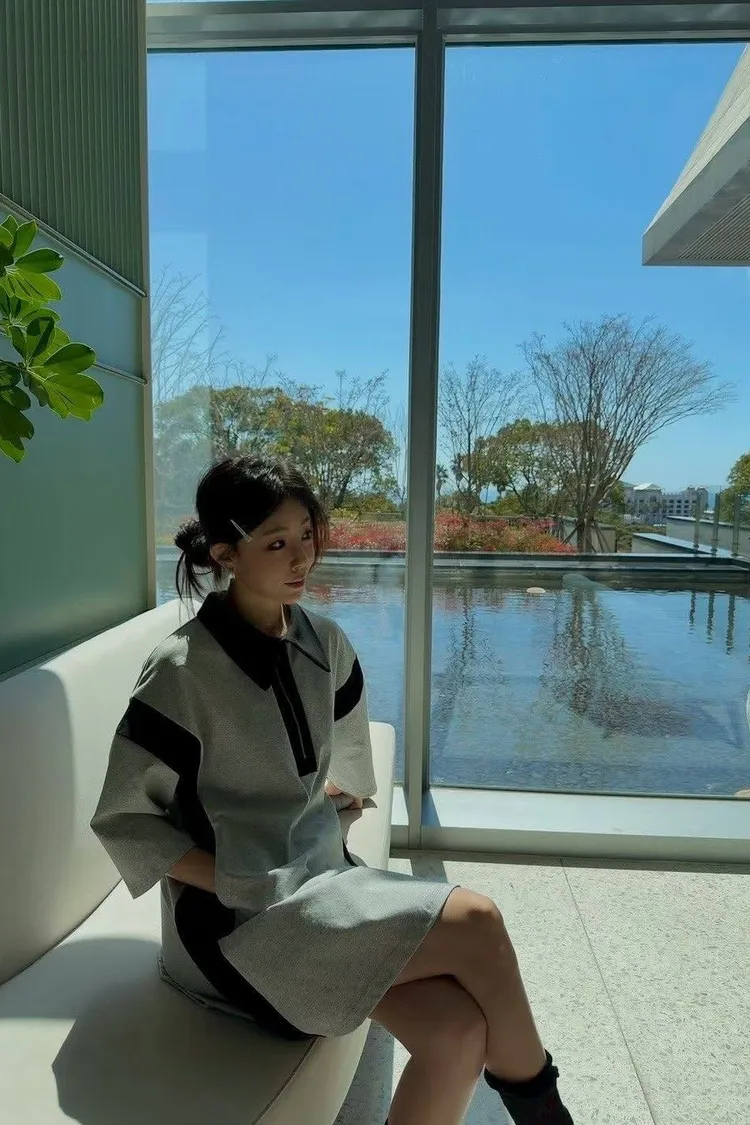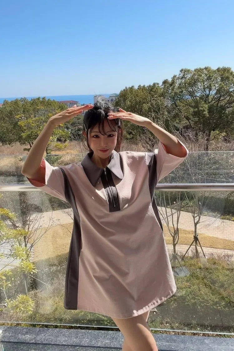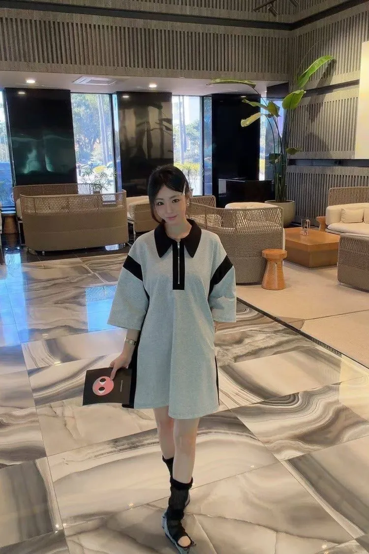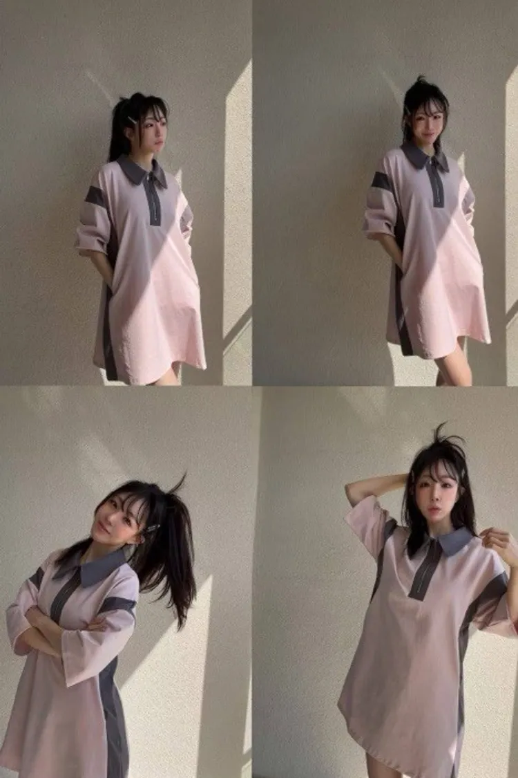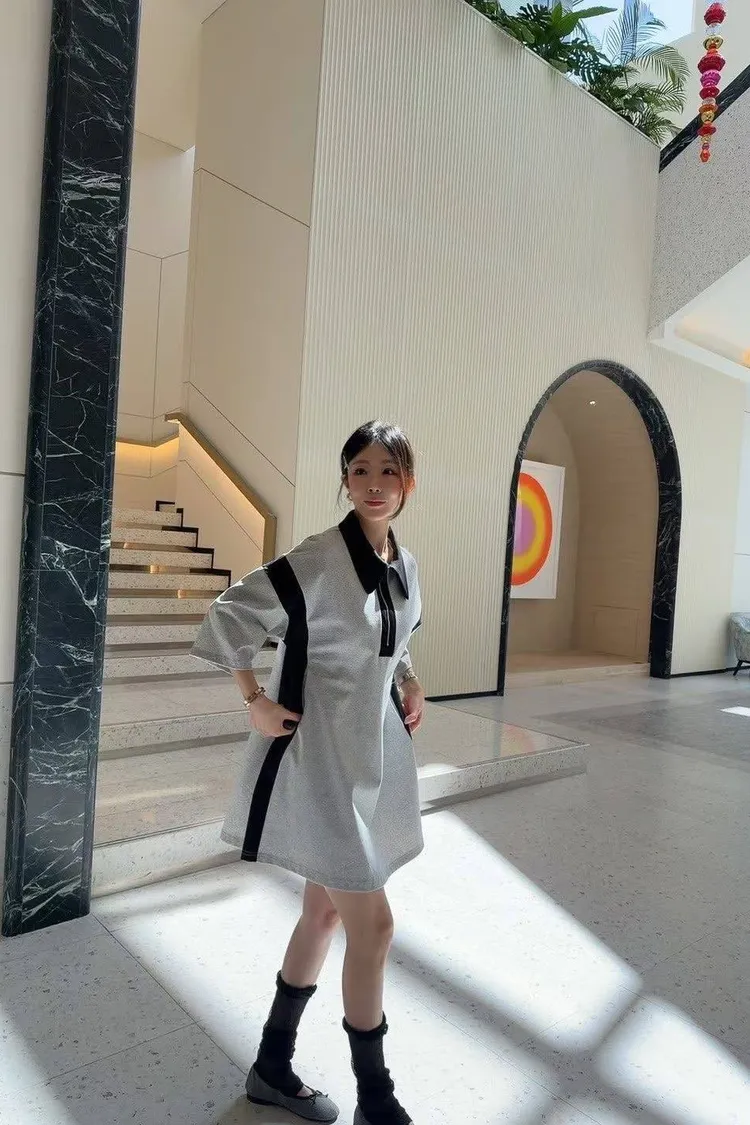 這款洋裝用簡潔的 Polo 翻領 搭配 半拉鍊設計 穿上秒有「甜酷」氛圍感!✨