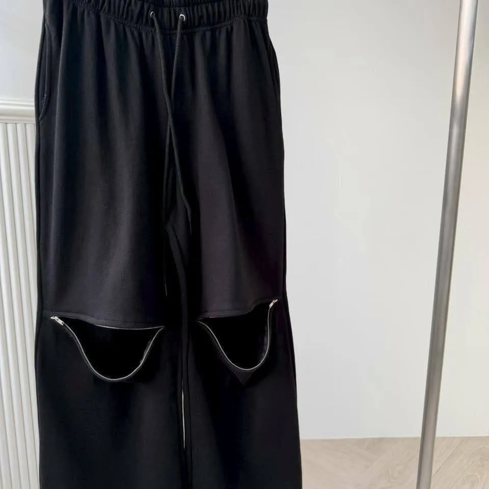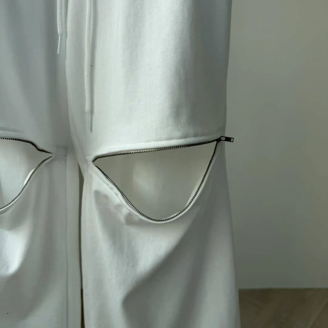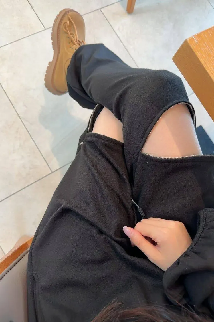 3️⃣ 【Cool Kid】膝蓋拉鍊設計感寬鬆闊腿運動褲(黑/白)