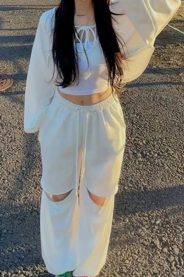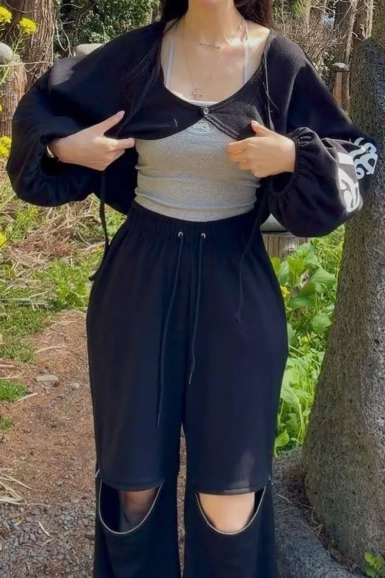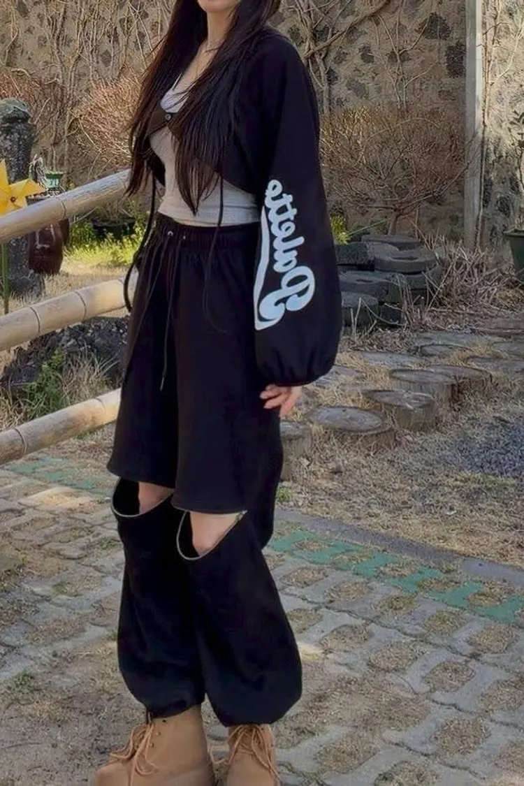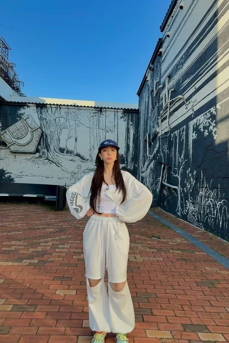 3️⃣ 【Cool Kid】膝蓋拉鍊設計感寬鬆闊腿運動褲(黑/白)