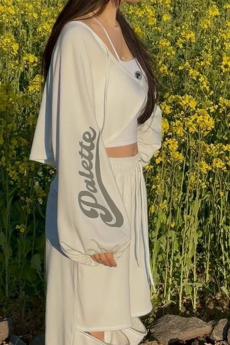 【Seoul Vibe】側字母抽繩罩衫 × 刺繡 Logo 背心 × 拉鍊兩穿運動褲套裝