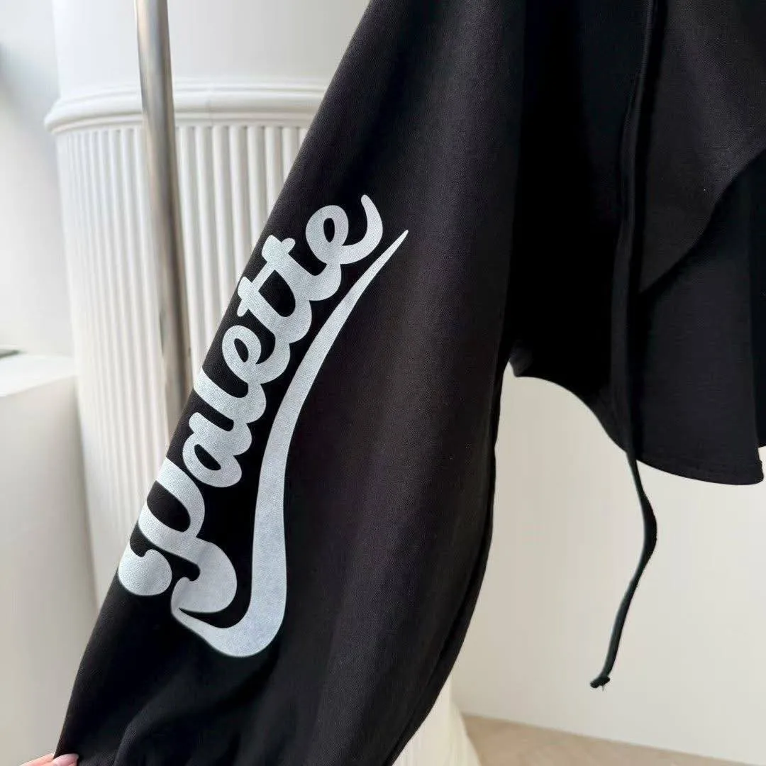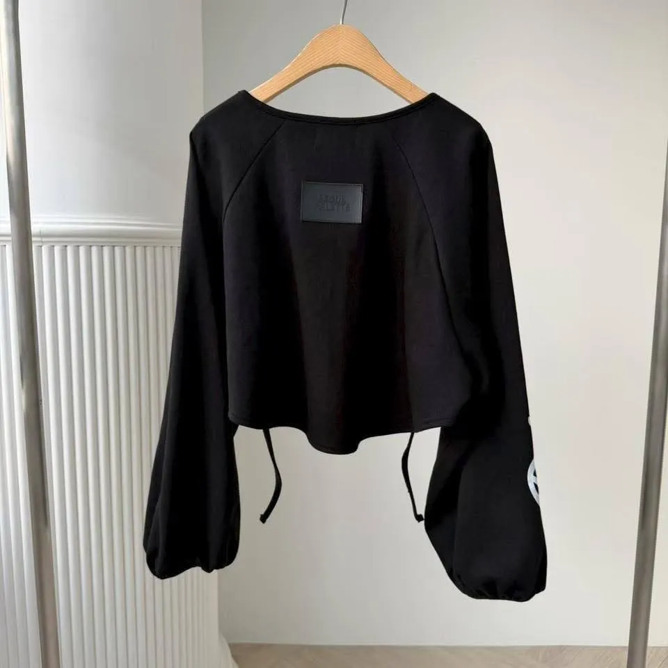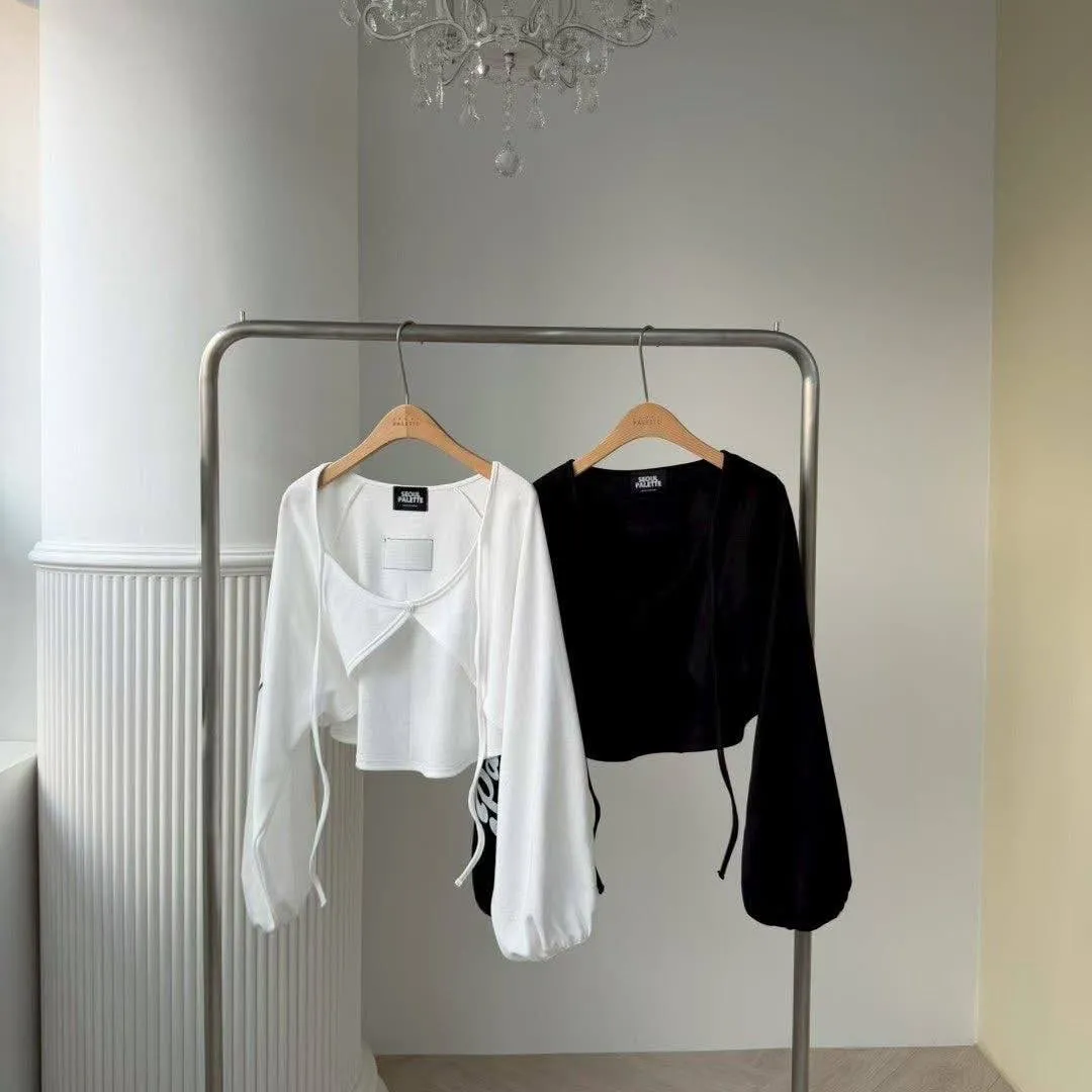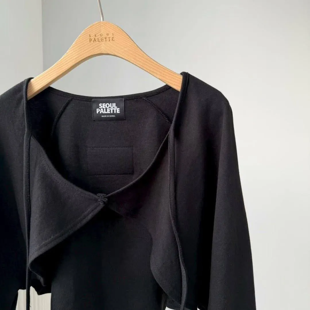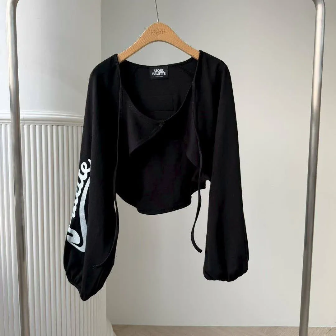 1️⃣ 【Seoul Vibe】側字母抽繩大袖擺短版小外套(黑/白)