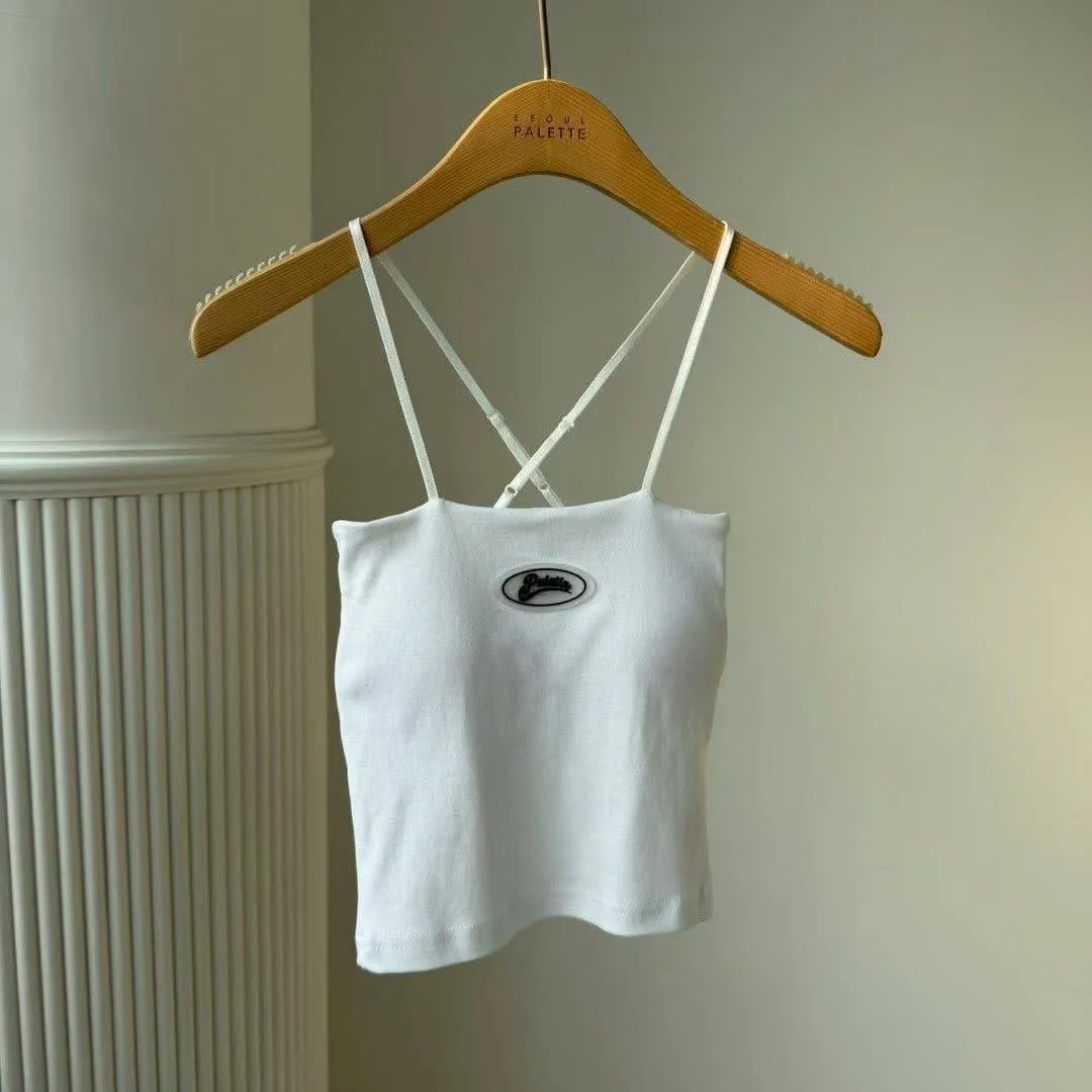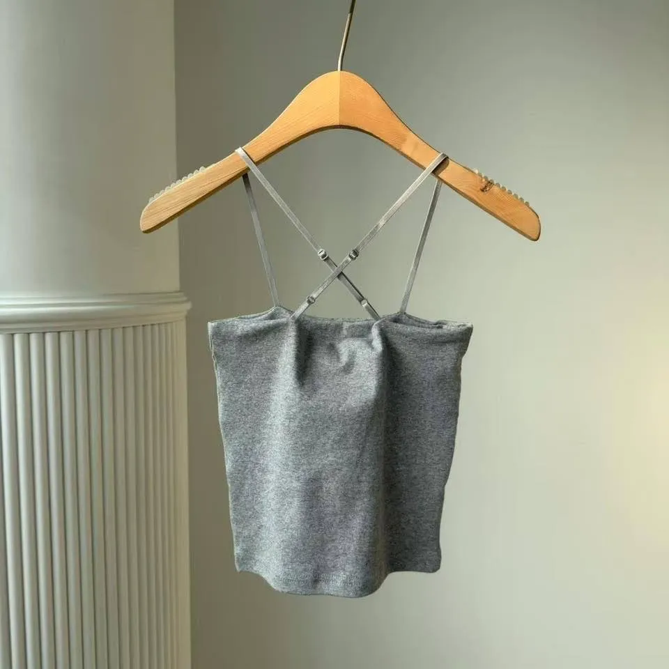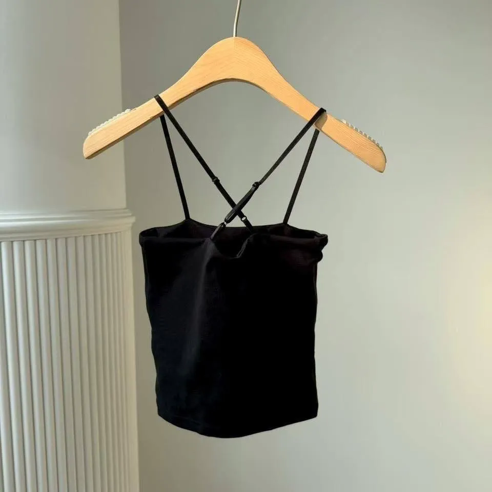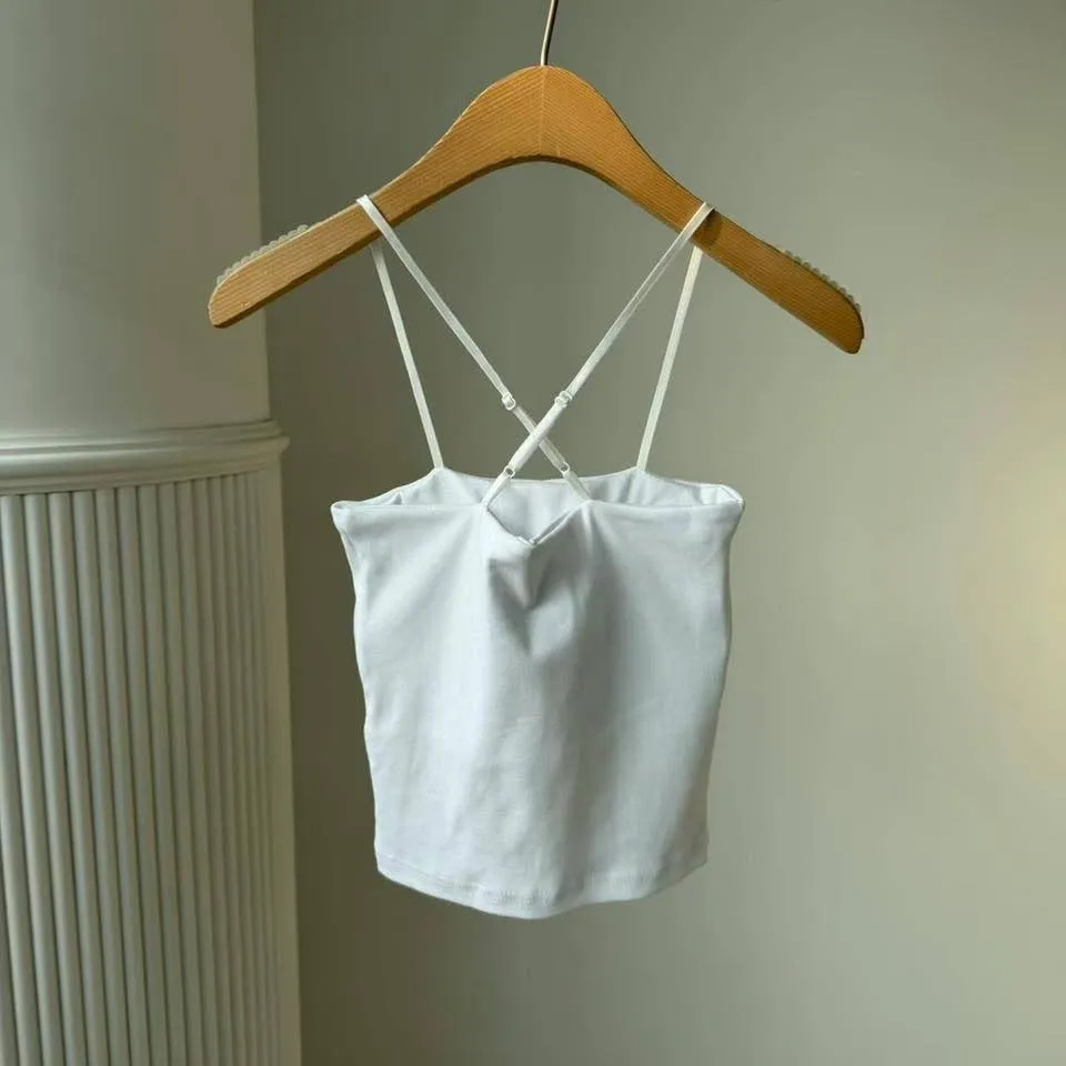 背後的交叉細帶設計,完美修飾肩胛骨曲線,單穿辣度滿分,搭在小外套裡面若隱若現超高級!內附胸墊,不用再煩惱內衣怎麼穿。