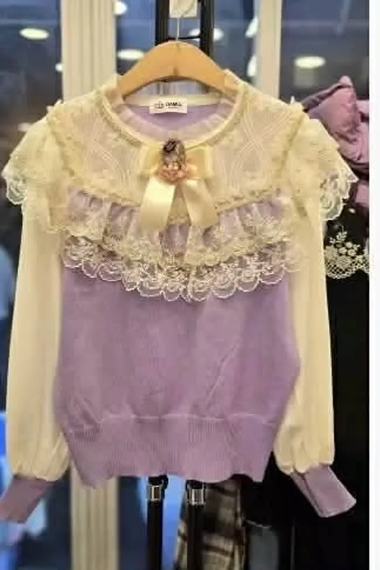 凡爾賽玫瑰蕾絲雪紡針織上衣